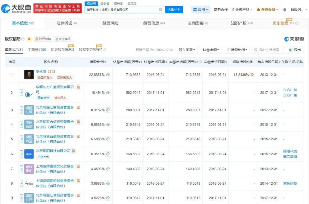 股东信息显示,该公司由罗永浩、成都东方广益投资有限公司、北京明匠汇智投资管理合伙企业(有限合伙)等共同持股。任职信息显示,罗永浩在该公司担任董事长并持股约23%。此前,该公司因未履行2142万元案款,已被列为失信被执行人(老赖)。