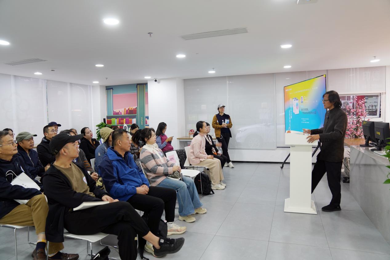 在深圳首家24小时开放的南园街道玉田图书馆短暂停留后,大家走进福田区社会工作创新实践基地。在南园小剧场,胡野秋围绕“巴登街名字的由来”等主题开讲,从地名变迁谈到城市记忆,从市井生活聊到社区营造。