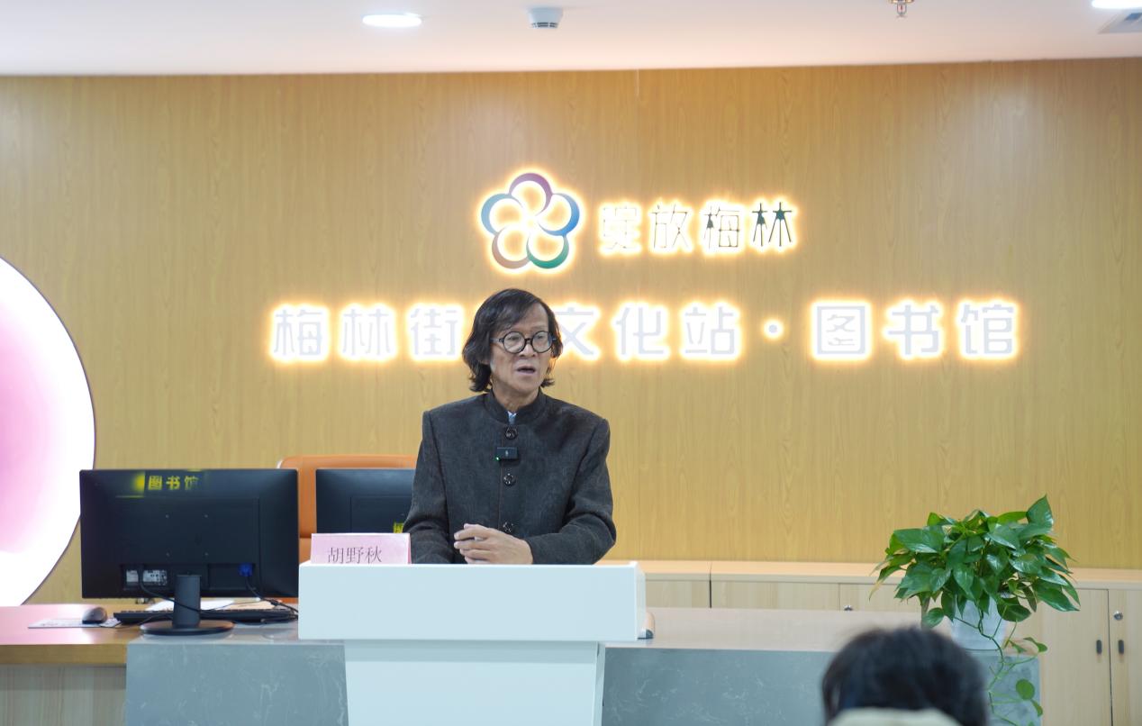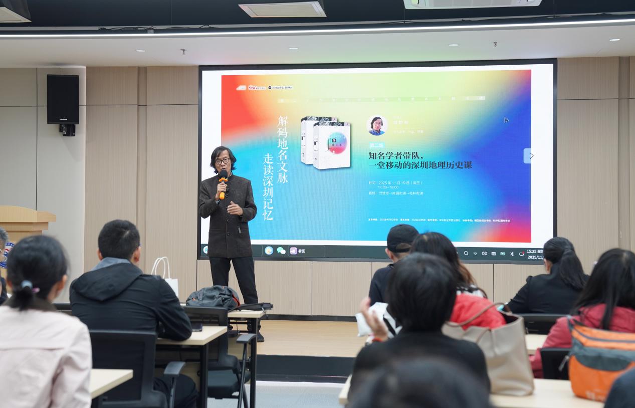 “为什么是‘落脚之地’?因为深圳是一座不断有人‘落脚’的城市。”在梅林街道文化站·图书馆的分享环节,胡野秋道出书名背后的思考,“每个地名,都是一群人、一段生活的开始。走读,就是去触摸这些有温度的故事。”分享会中,胡野秋从个人的发展经历结合自己每个“落脚之地”侃侃而谈,为大家讲述自己勘探深圳地名变化的历史故事,瞬间点燃现场观众的好奇心,分享会结束后,大家纷纷围着胡野秋了解更多深圳地名变化有趣的故事。