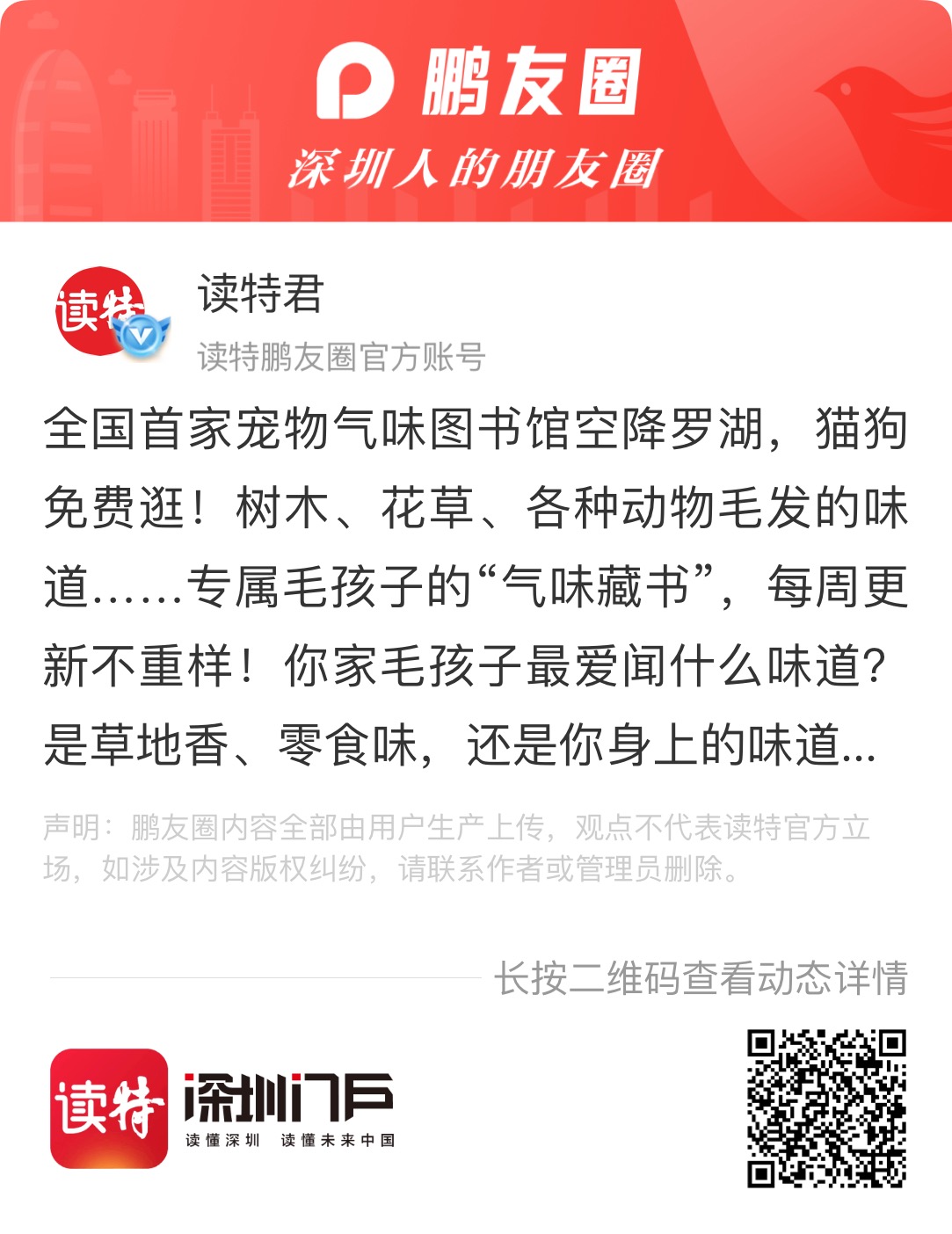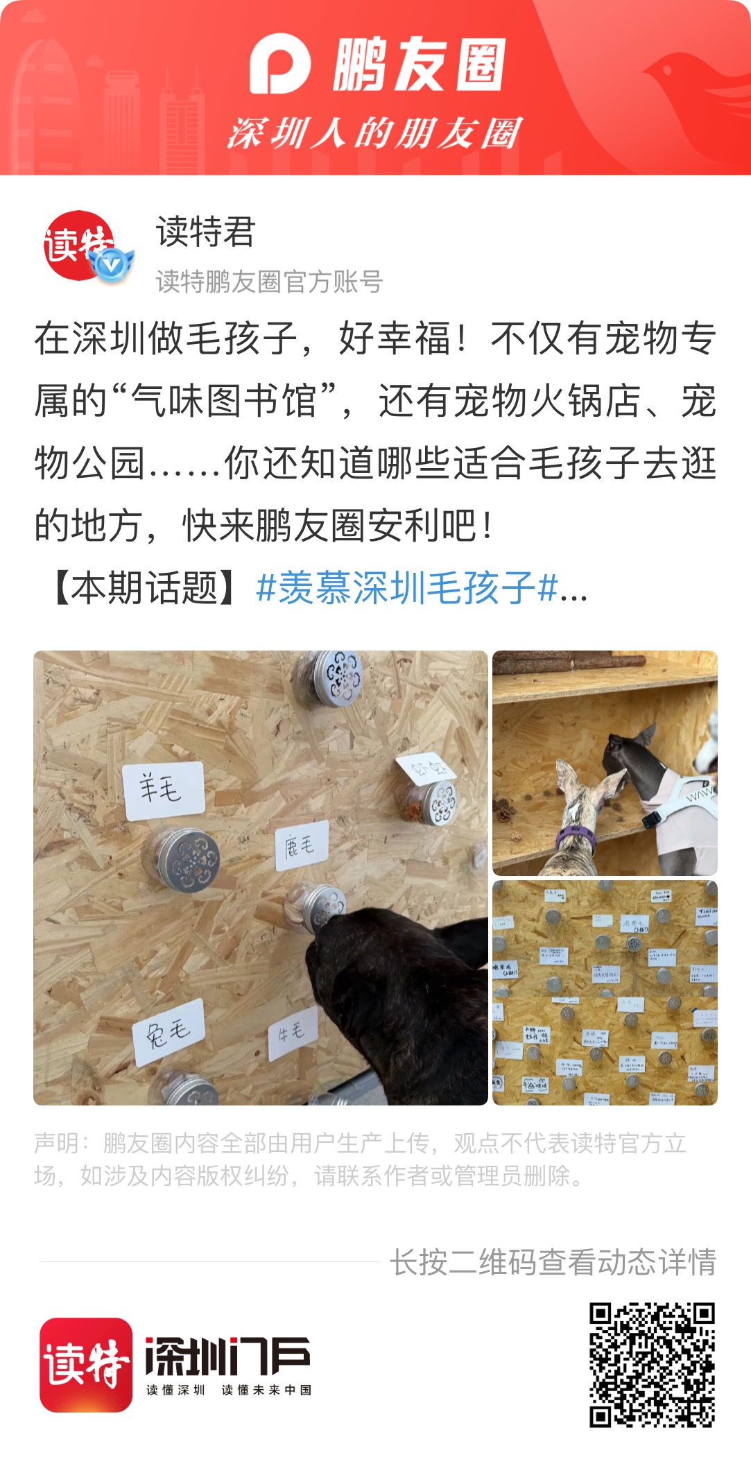 作为一座包容多元的城市,深圳近年来持续推进宠物友好建设,从宠物友好公园、餐厅到商场专属空间,不断为宠物主人和毛孩子创造便利。此次全国首家宠物气味图书馆的落地,进一步丰富了宠物友好场景的内涵。“深圳的毛孩子也太幸福了!” 网友们纷纷为这一举措点赞。