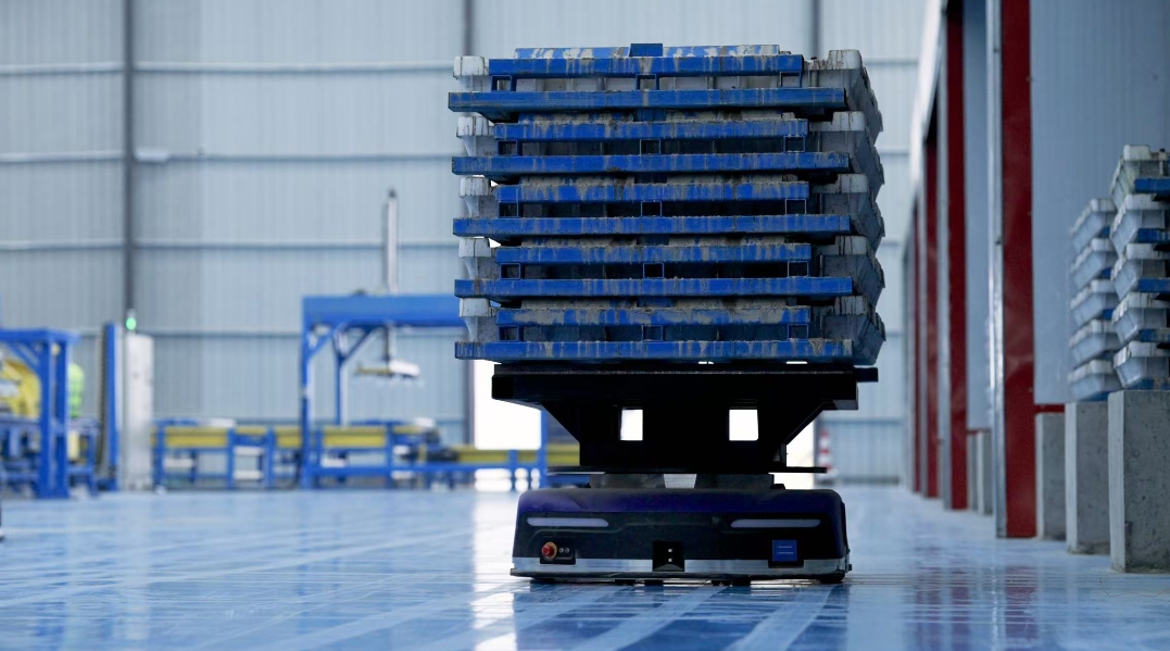 在梁板预制方面,智慧梁场采用自动化环形生产线,配套无人上料搅拌站、鱼雷罐输送系统等先进工艺,大幅提升生产效率。在小型构件预制中,AMR智能无人搬运车、码垛机器人等设备的应用,节省码垛时间63秒/垛,工作节拍达到5到8次/分钟。通过推动生产模式由“场”向“厂”的转型升级,项目成功实现了预制构件的工厂化、标准化生产,从源头上锁定工程品质,为高速公路建设树立了集约化、智能化建造新样板。