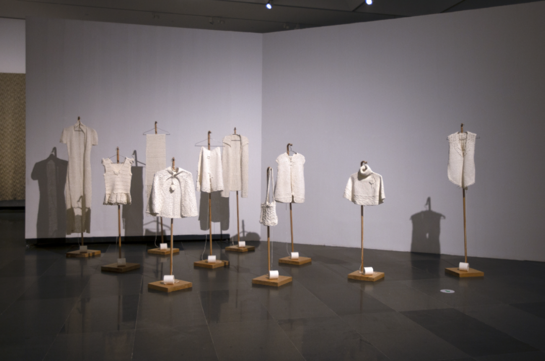 王雷《手织手纸No.4》,卫生纸搓线及编织技术,尺寸可变,2013年