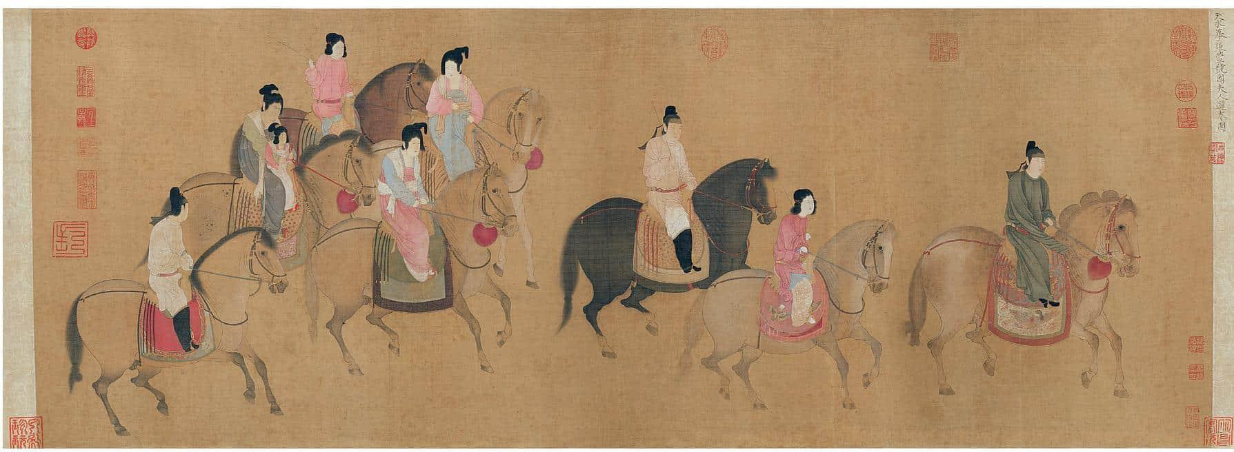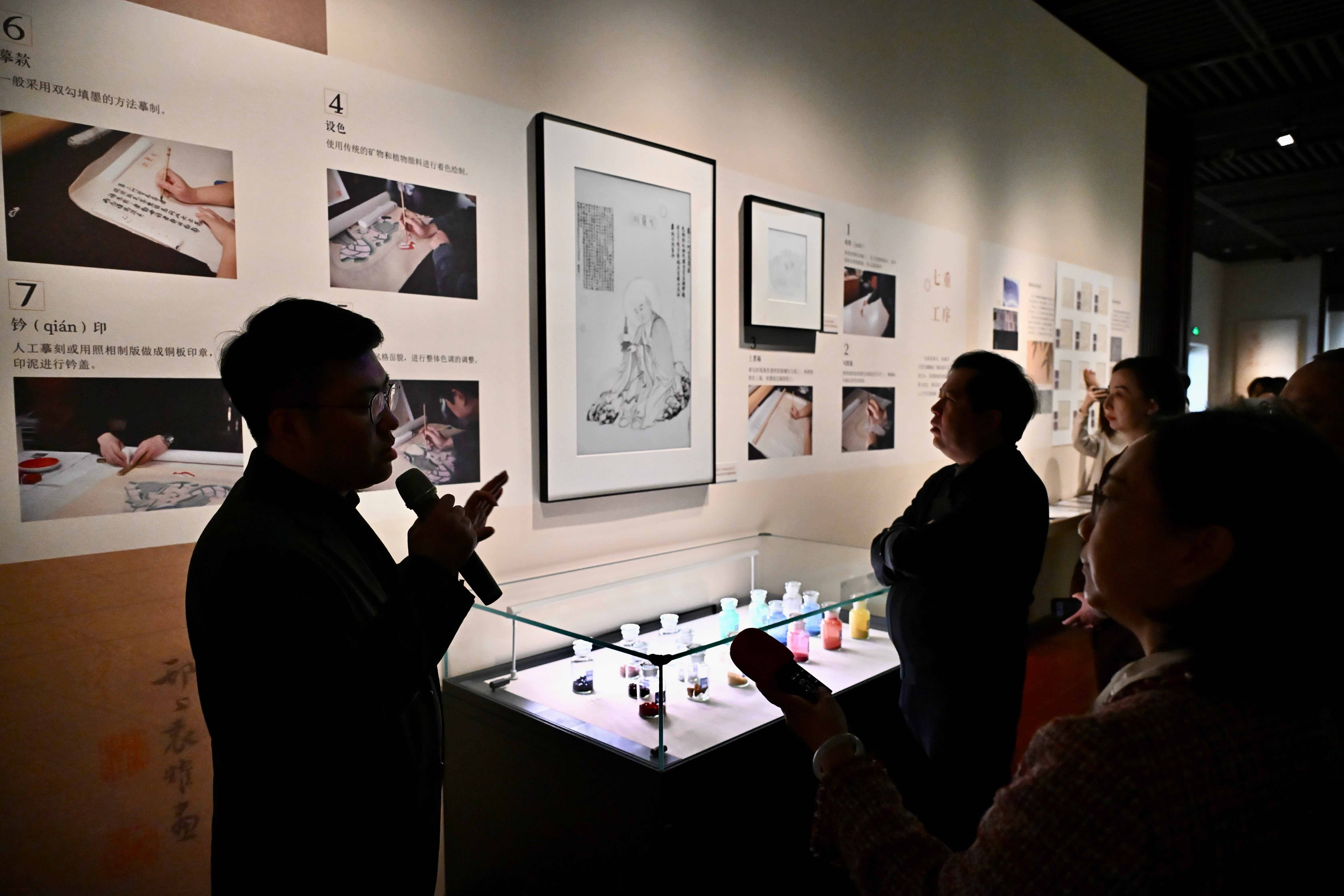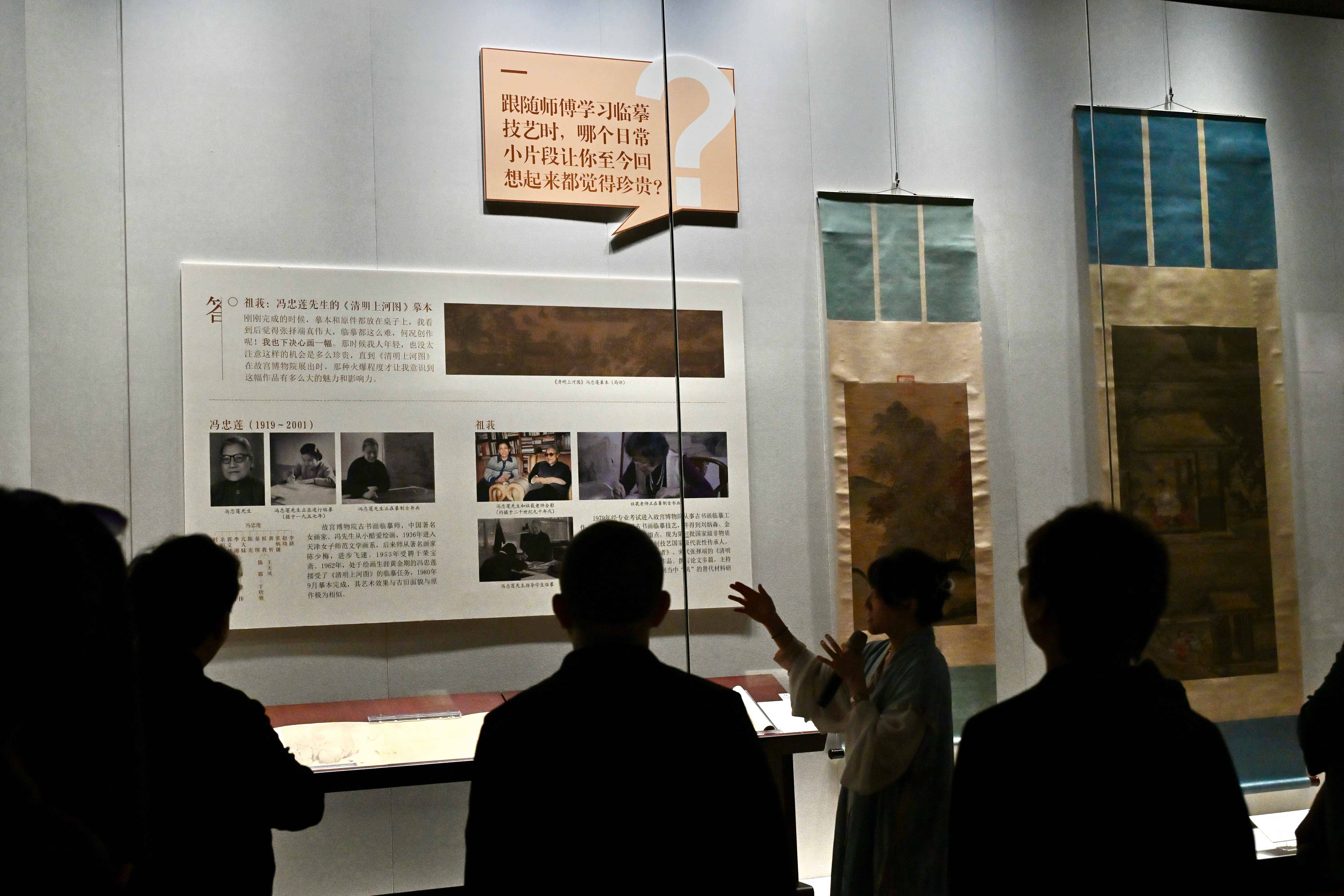 本次展览共展出故宫博物院藏101件古书画现代摹本,涵盖西汉《马王堆汉墓出土导引图》、唐张萱《虢国夫人游春图》、五代周文矩《重屏会棋图》、宋李嵩《货郎图》等诸多珍贵名迹的摹本。展览分为“临摹传千古”“技艺构形神”“心手续文脉”三个章节,分别阐释中国传统书画临摹的历史文化内涵、临摹技艺从“图像再现”到“行为再现”的发展历程,以及临摹技艺作为国家级非物质文化遗产的传承脉络。这些临摹作品不仅是对古书画的再现,更是艺术与科技交融的成果。
