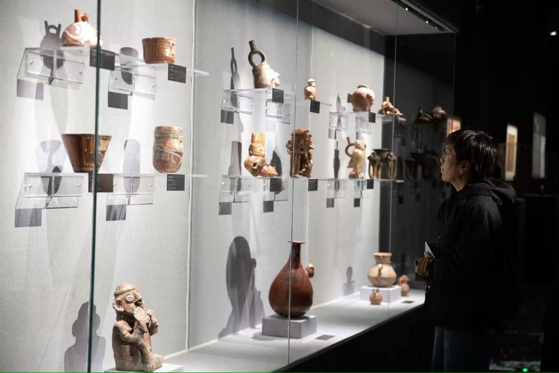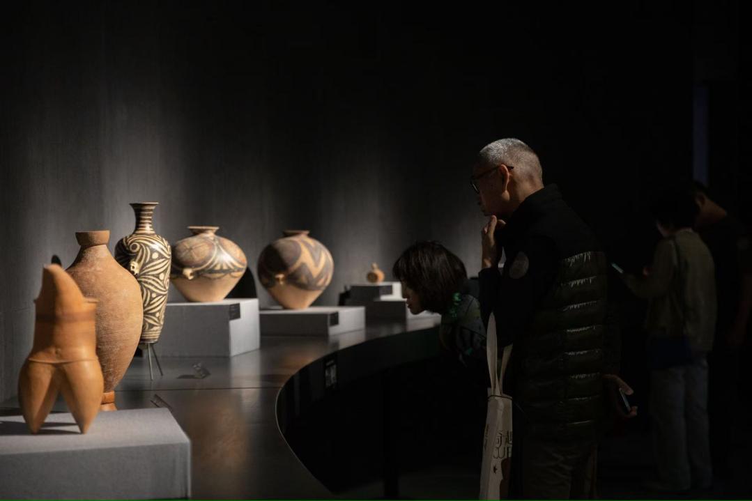 观众驻足于大河摇篮展厅的彩陶之路展区