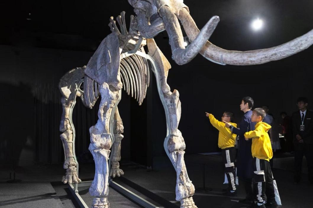 小观众被庞大的黄河剑齿象骨骼化石吸引