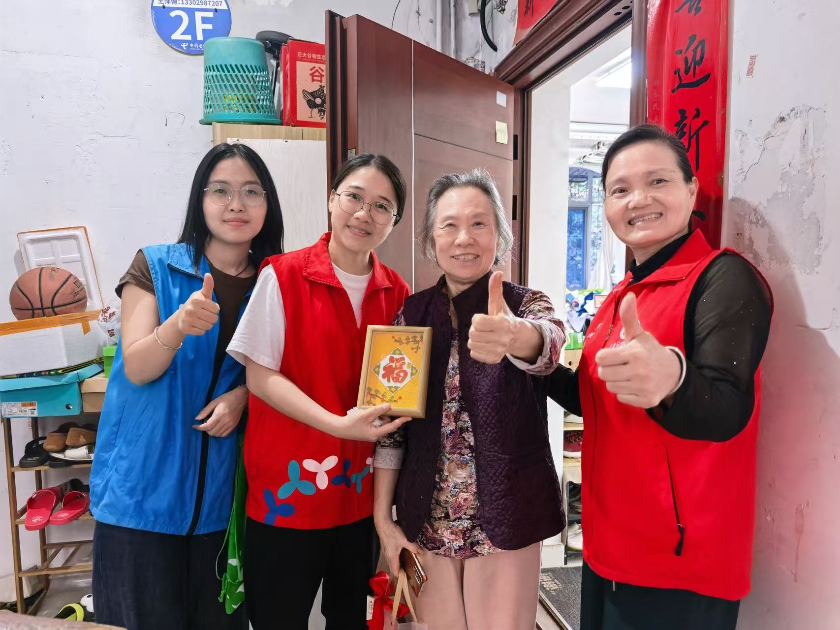 尤为值得一提的是,活动成果——无论是精美的宋锦扇、珐琅画,还是情意满满的手工月饼、艾草制品,均化身为“温暖的使者”,由社区工作人员和志愿者送至独居、高龄长者家中。
