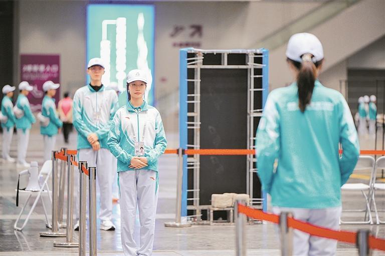 “小海豚,欢迎您!”数字动画专业大三学生农游游在五洲宾馆安检区一次次重复着这句话,引导来自全国各地的嘉宾完成安检。在她看来,全运会是湾区融合的缩影,“我们因赛事相聚,也因交流更近”。尽管未能在闭幕式现场服务,农游游依然全心投入:“每个岗位都是整体志愿服务的一环,都能感受到全运荣耀,内心的自豪与激动丝毫不减。”