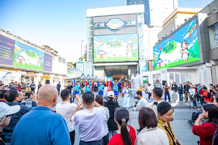 当天,伴随着声声来自内蒙古的歌舞,“蒙品入湾”的LOGO与字样点亮北京路“广州之眼”,让更多人被“蒙品”所吸引。