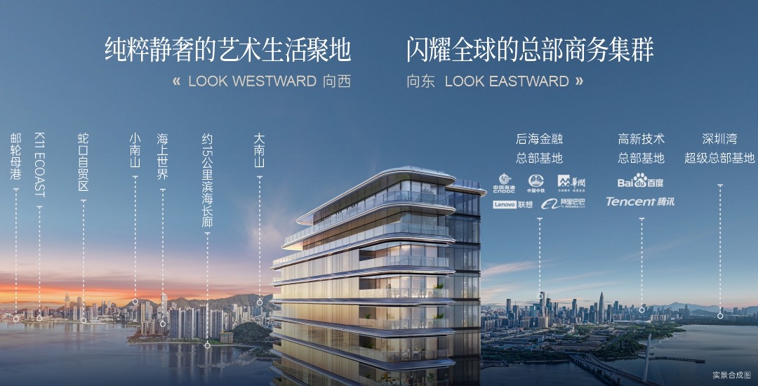 信悦湾所处深圳湾滨海国际住区,向东看,是创新驱动、引领全球的深圳答卷;向西看,是从改革前沿到世界都会沉淀的典范界面。旗舰商圈、自然公园、国际教育与星级酒店于此交融,织就一幅国际化的滨海生活长卷。