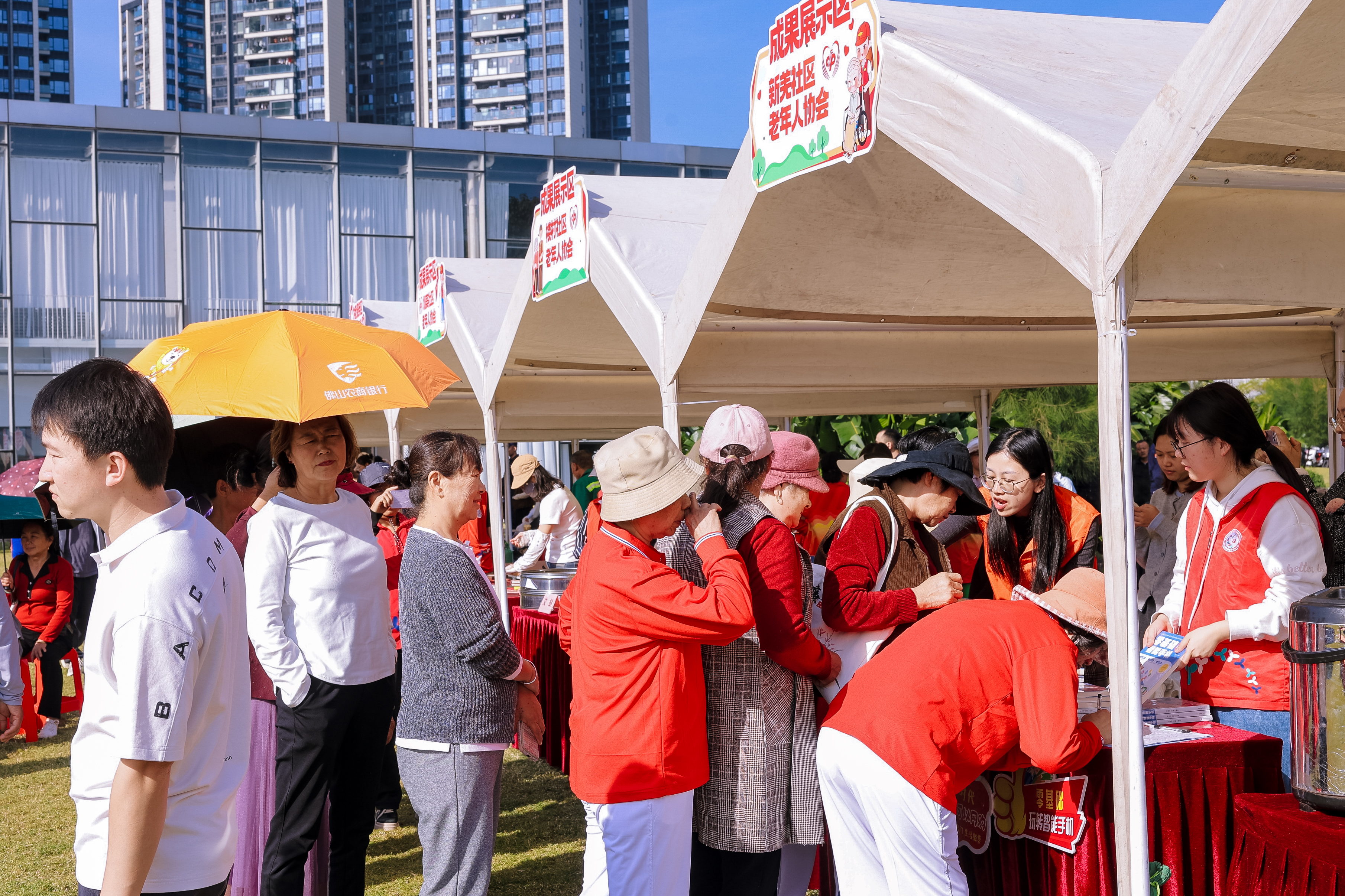 公益服务区内,爱心义剪、手机贴膜等便民服务有序开展,志愿者们耐心细致地为长者提供服务,切实回应居民日常需求,营造“邻里互助、社区共融”的浓厚氛围;为老服务区特邀中科智仁科技(深圳)有限公司、深圳市厚德世家健康科学有限公司等多家智慧养老、居家服务企业参与,集中展示智能家居、健康监测、助行辅助等各类养老科技产品,让长者近距离感受“科技赋能养老”的便捷与魅力,助力长者跨越“数字鸿沟”;游戏互动区设置“乐龄人生大富翁”“安康满堂保龄球”等趣味游戏,将健康养老知识融入互动体验,让长者在轻松愉悦的氛围中学习养老知识、锻炼身体;意见征集区以“意见征集墙”的形式,广泛收集居民对辖区养老服务的意见建议与真实需求,为后续优化养老服务、精准对接需求提供有力依据。