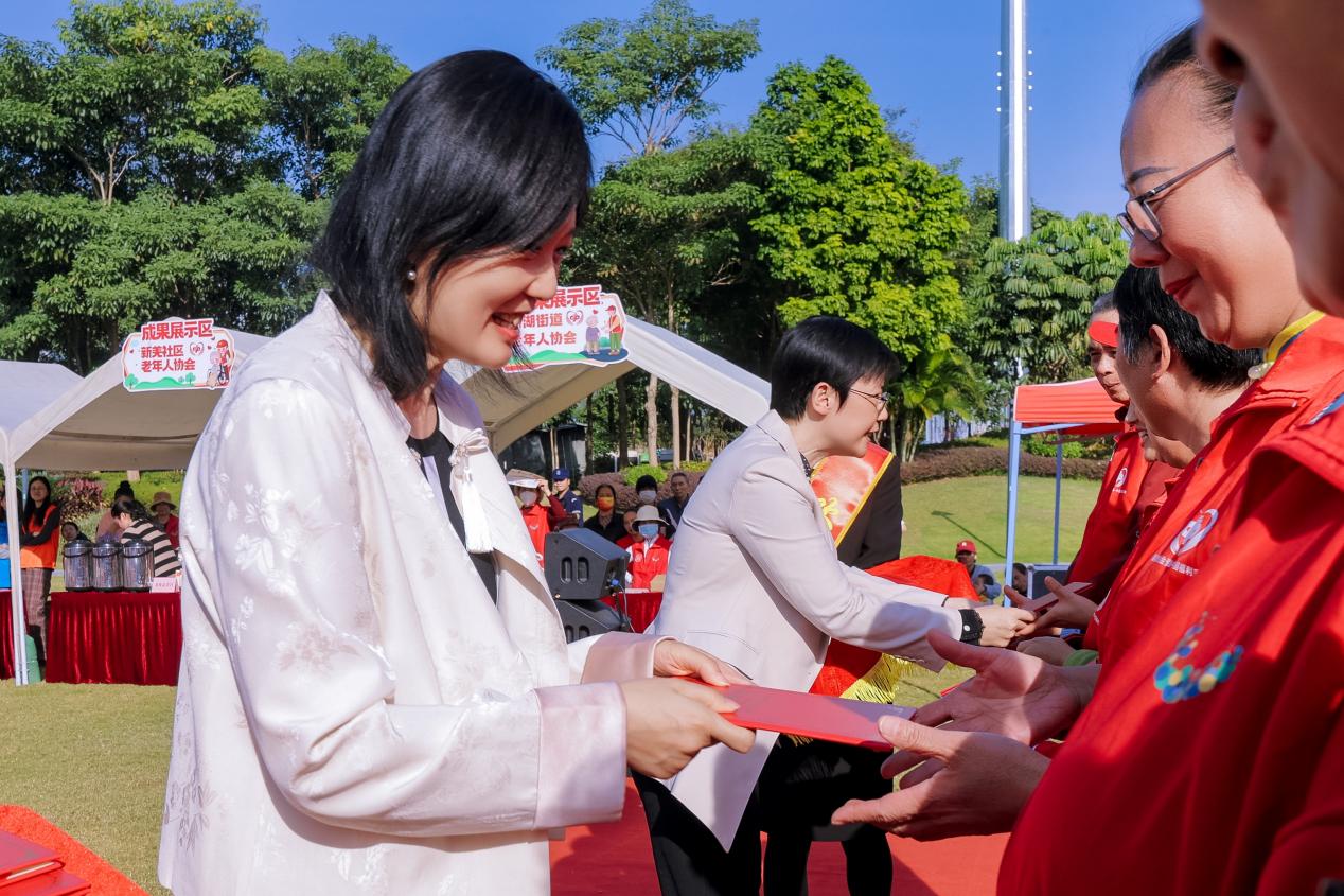 11月26日下午,由新湖街道主办的“银龄大舞台·老友服务市集——社区长者文化节暨志愿者表彰活动”,在光明科学城展示中心后方大草坪温情启幕。活动以“银发守护·乐龄有为”为核心主题,集中呈现“幸福老人计划”实施以来的丰硕成果,生动展现新时代新湖长者“老有所学、老有所为、老有所乐”的精神风貌与昂扬姿态。光明区民政局、新湖街道相关领导,各社区负责人、老年协会代表、助老志愿者及辖区居民近400人齐聚一堂,共赴这场专属长者的温暖盛会。