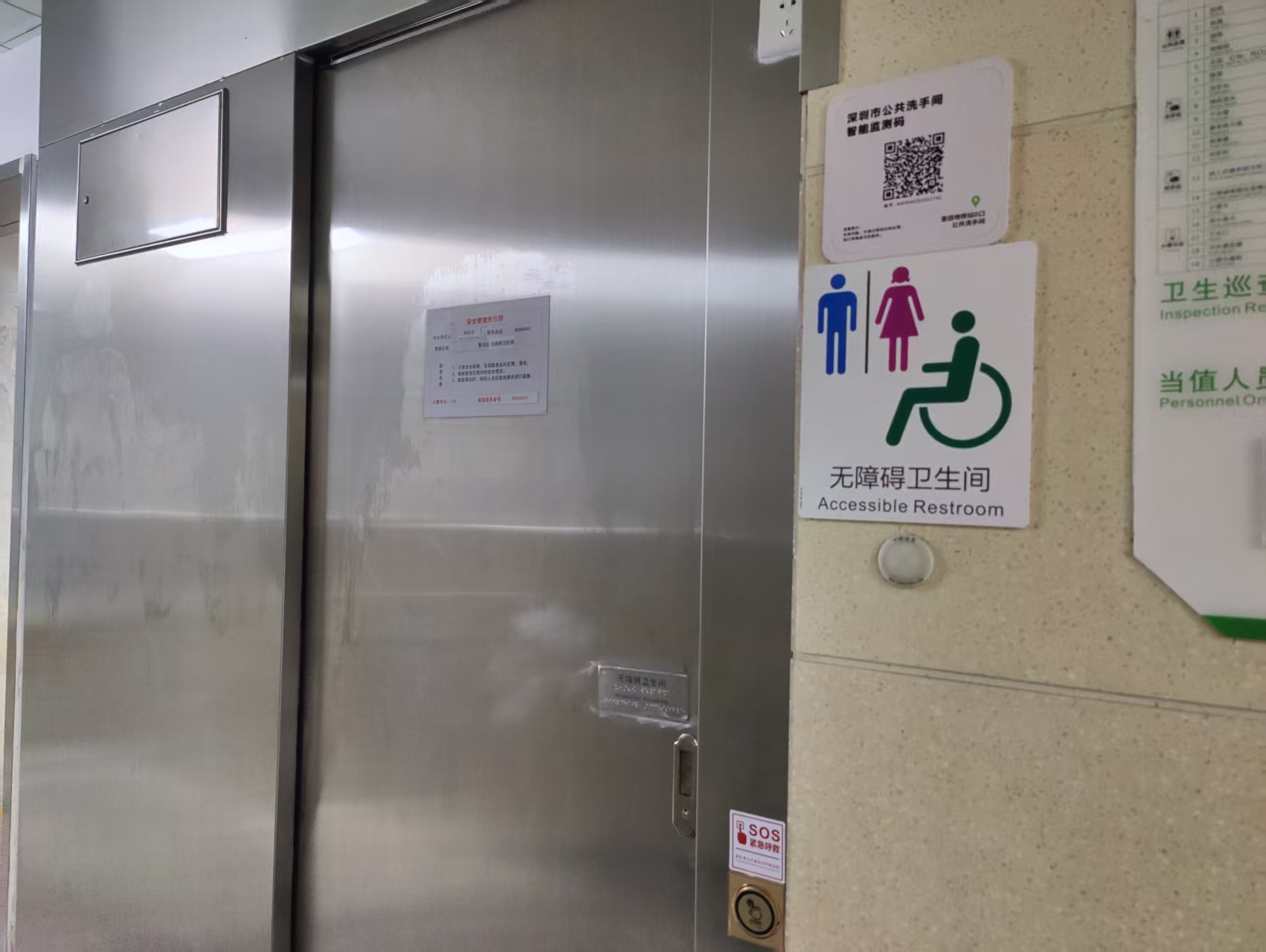 景田地铁站内的无障碍卫生间使用水平滑动式开门。