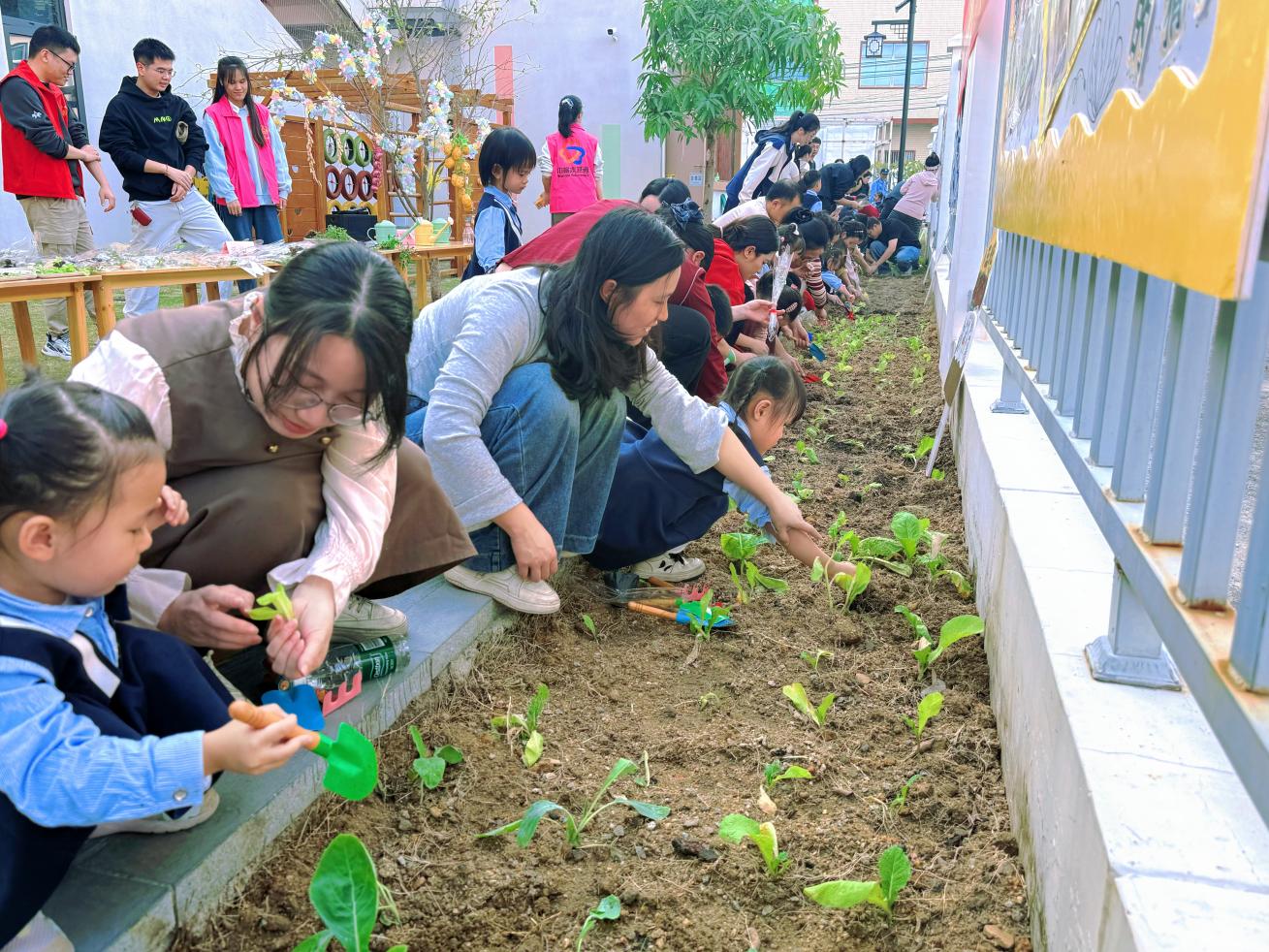 开耕仪式上,孩子们与家长组成“亲子协作组”,在划定的小菜园区域里共同劳作。巾帼志愿者协助指导,与家长孩子一起松土、挖坑、放置幼苗、培土和浇水。孩子们亲手种下自己挑选的菜苗,家长们在一旁耐心讲解种植技巧,亲子间的互动画面满是温馨。