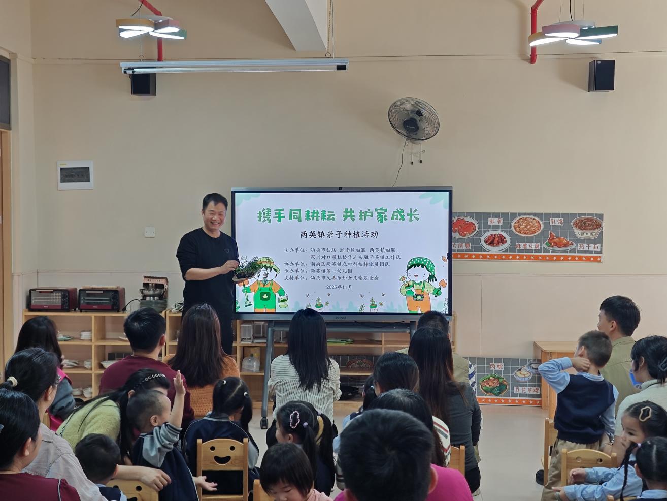 11月24日,由汕头市、潮南区以及两英镇妇联,深圳对口帮扶协作汕头驻两英镇工作队主办,潮南区两英镇农村科技特派员团队、两英镇第一幼儿园协办,汕头市义善乐妇女儿童基金会支持的“携手同耕耘 共护家成长 ”亲子种植活动在两英镇第一幼儿园举办。活动旨在引领广大家庭树立绿色环保理念,积极参与绿美潮南生态建设,营造家庭文明新风尚。