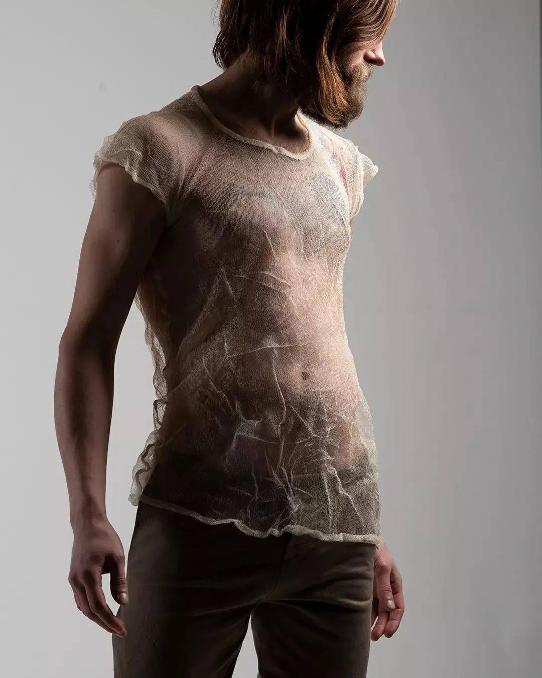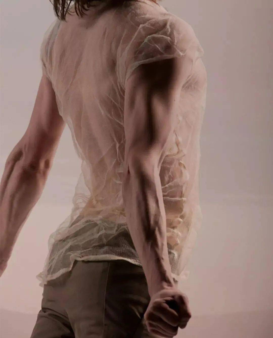 ● 曾用转基因山羊生产的蛛丝蛋白制作近乎隐形的衬衫,反思人类虚荣与进步主义。