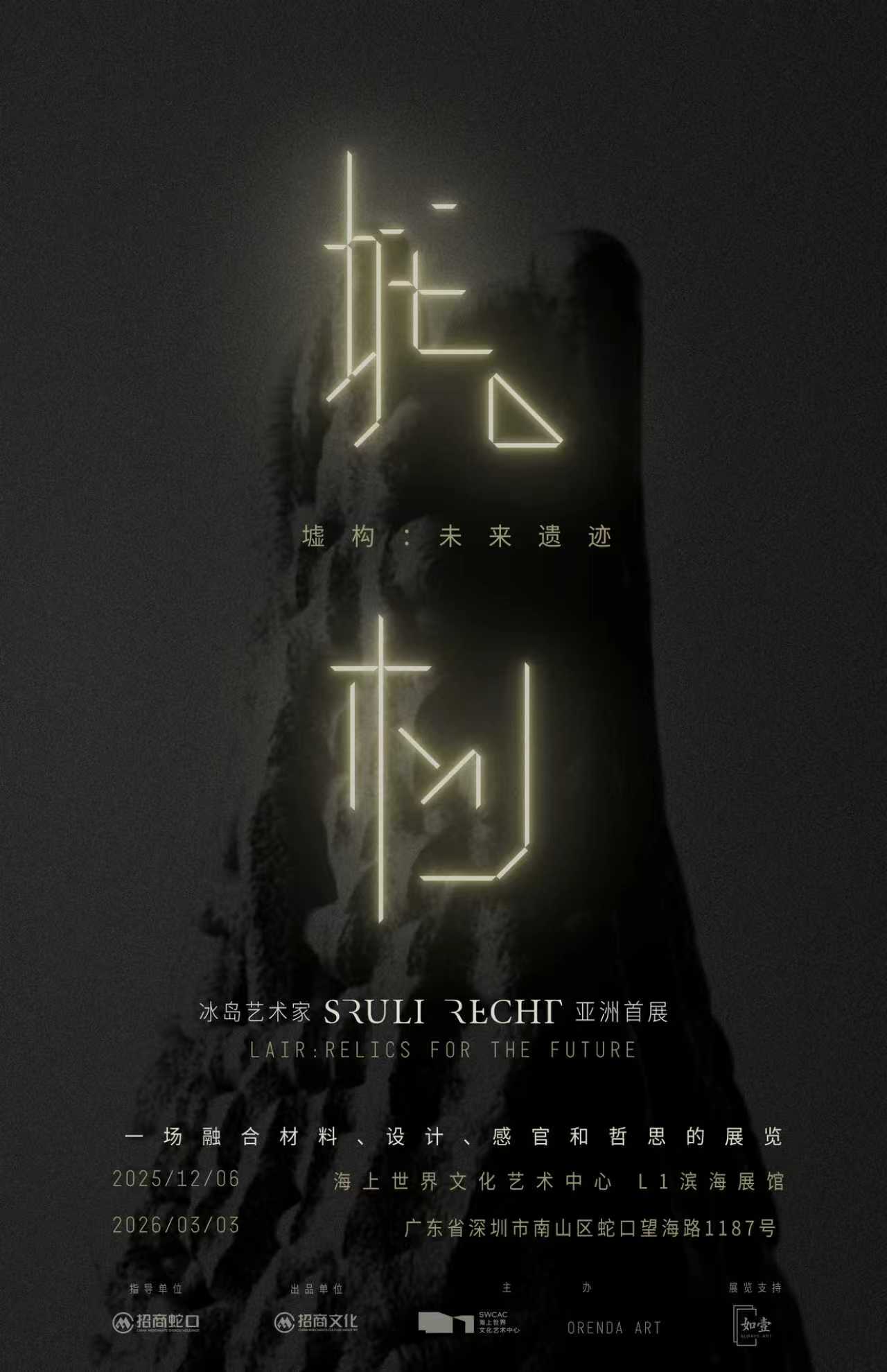 海上世界文化艺术中心宣布,冰岛国宝级先锋当代艺术家Sruli Recht在亚洲的首次个展《墟构:未来遗迹》将于12月6日在海上世界文化艺术中心1楼滨海展馆向公众呈现。本次展览凝结了艺术家多年的创作脉络,将集中呈现其多领域艺术实践成果,并以独特的实验性材质和沉浸式空间营造出如未来遗迹般的幻境,邀你一同探索:人类栖居的本质,究竟是什么?
