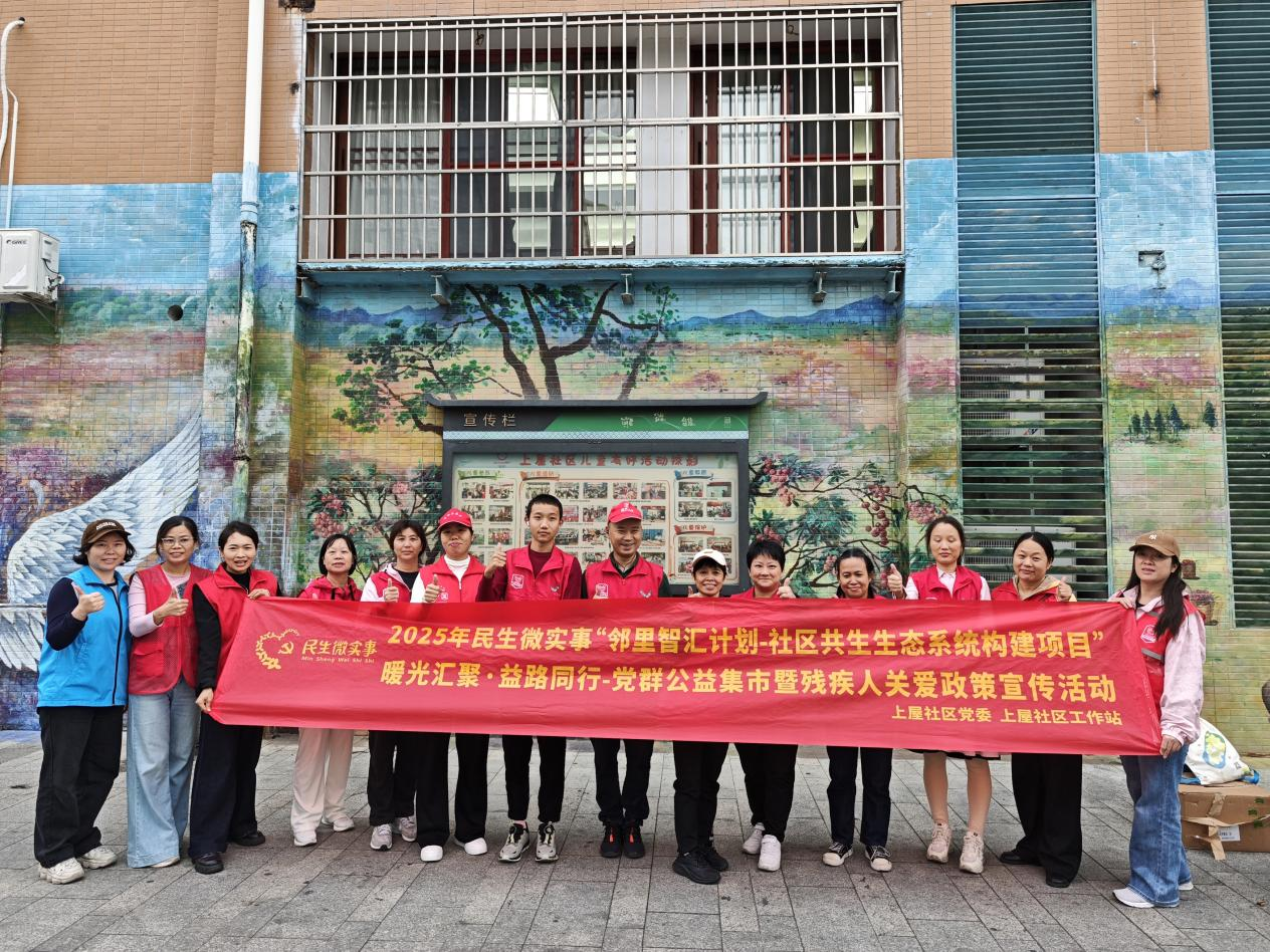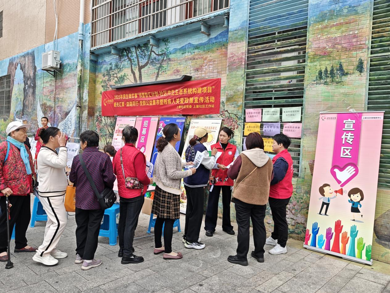 在第34个国际残疾人日即将来临之际,为进一步营造理解、尊重、关爱残疾人的社区氛围,石岩街道上屋社区党群服务中心于近日开展了“暖光汇聚·益路同行”公益集市暨残疾人关爱宣传活动。作为社区2025年民生微实事“邻里智汇计划”—社区共生生态系统构建项目的系列活动之一,本次活动通过“政策宣传+互动体验+便民服务”的活动模式,吸引近百名居民积极参与。
