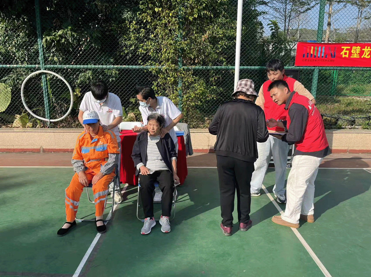 近日,为弘扬敬老爱老的中华传统美德,丰富老年朋友精神文化生活,南山区西丽街道石壁龙社区“金晖敬老月”活动在牛成村篮球场温情启幕。活动设置趣味互动、便民服务等多个板块,吸引了社区居民参与。