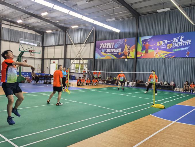 同时,社区羽毛球比赛作为本次系列活动的亮点之一,更是进一步推动全民健身热潮。比赛设单打、双打等多个组别,共吸引近百名辖区居民与企业职工报名参赛。赛场上,选手精神饱满、技术娴熟,发球、扣杀、吊球等精彩场面频现;场边观众热情助威,加油声与掌声不断,充分体现“友谊第一,比赛第二”的体育风尚。活动不仅为羽毛球爱好者提供交流与展示平台,也通过竞技互动增进邻里之间的了解与友谊。