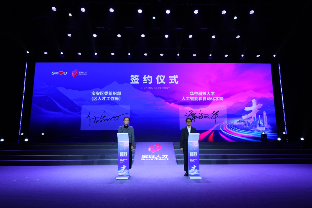 更关键的一步是,宝安区委组织部(区人才工作局)与华中科技大学人工智能与自动化学院现场签署战略合作协议。这意味着,宝安与华科的合作已从偶然的点上开花迈向系统的面上成景,未来的宝安,不仅是产业沃土,更是顶尖科技成果的应用场和试验田。