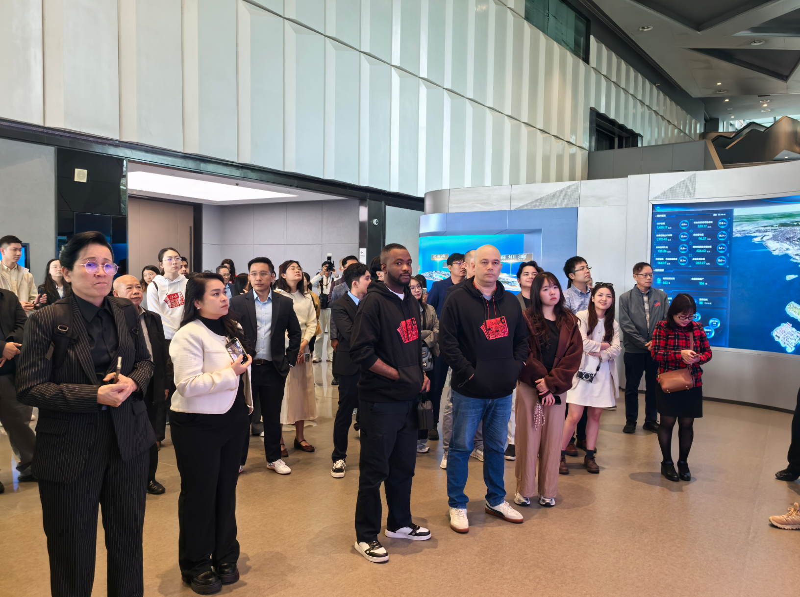在前海石公园,参访团实地感受前海从一片滩涂到如今的国际化新城的城区样貌,在前海展示厅内,参访团通过观看“中国梦・前海梦”的视频短片,了解前海的发展历史和最新成果。微众银行作为全球领先的数字银行,其普惠金融成果与技术创新实践让大家印象深刻。前海5号楼则以国际化的人才服务生态,展现着深圳最新前沿科技成果。