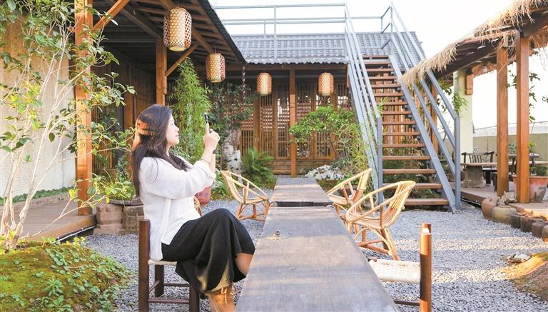 ▲小院里景观优美,让客人情不自禁地拍照记录。