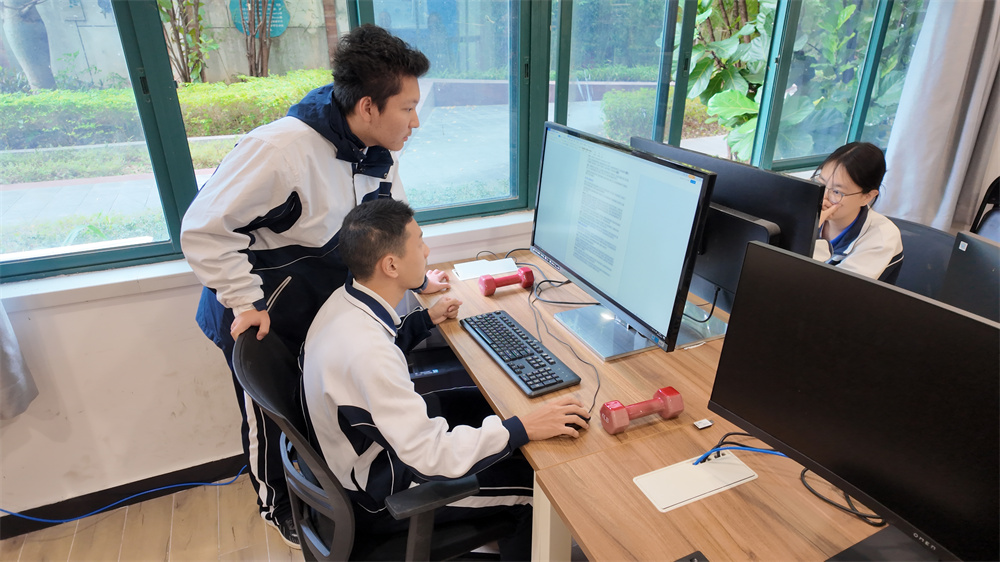 课堂是教育教学的主阵地,创意、创新、创造才是教育教学的真谛。走进AI自习室与AI体测室,教学处主任廖炉向记者团介绍了AI教学模式。他自信地分享道:“学校聚焦数智赋能,驱动教育创新发展,启动‘运用人工智能实施大规模个性化学习’项目,以数学学科为试点,并逐步推广至物理、化学等学科。通过构建知识图谱认知模型,形成大数据驱动的学生画像,推动教与学的深度转型,探索出以‘泛在、互动、协作、探究、个性化’为特征的未来教育新生态与新模式。”