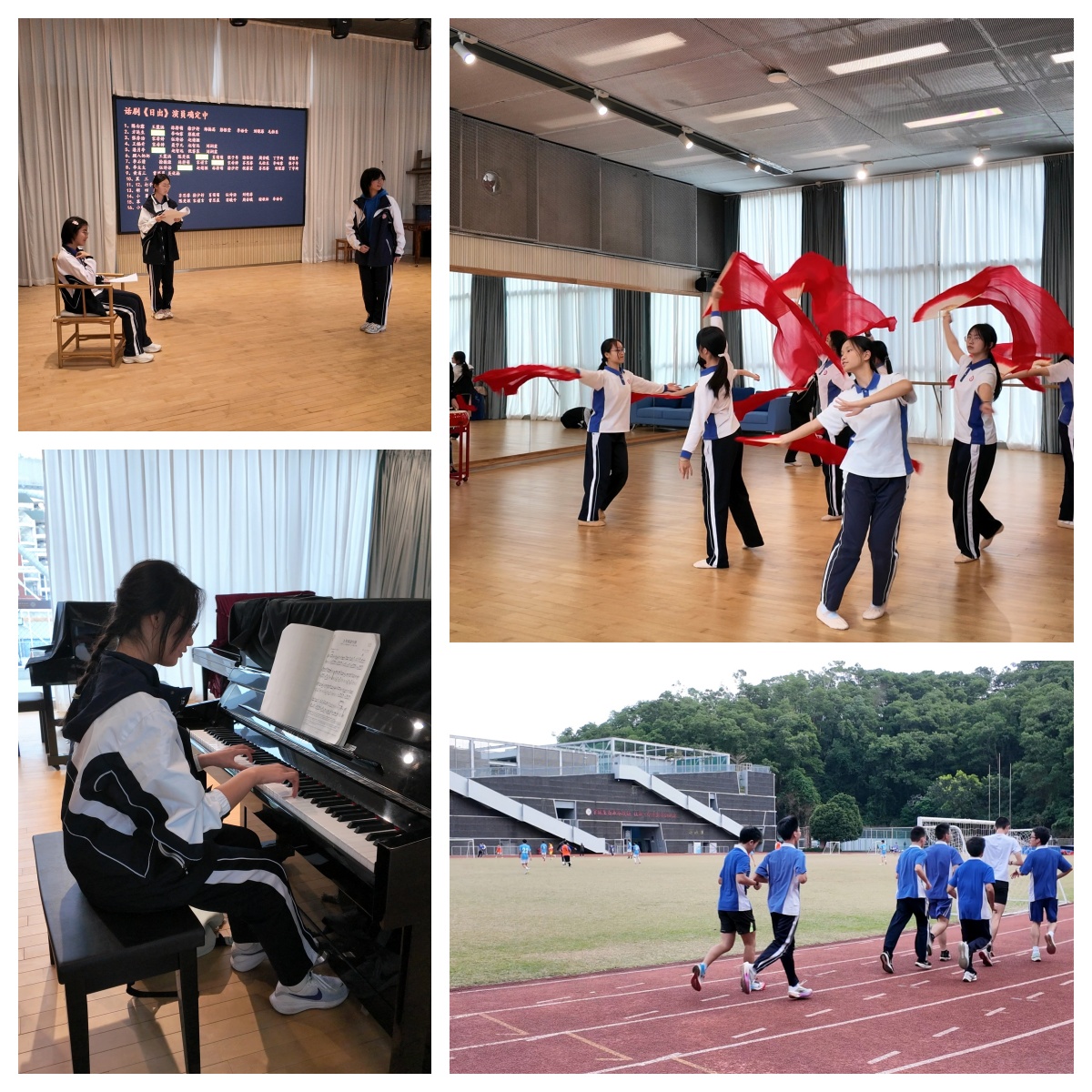 民乐团乐器多样、氛围浓厚,悠扬的民乐声,传承着中华文化的精髓,也培养了学生们的艺术修养和团队精神。戏剧团学生正在试戏, “和风戏剧团”已有十余年历史,作为红岭的核心校团之一,始终秉持着“无门槛”的核心理念,就算零基础也可以在这里得到锻炼,找到自己适合的角色,创造一个属于自己的舞台。