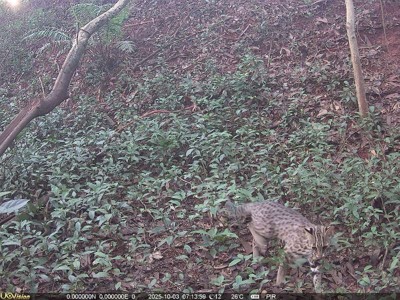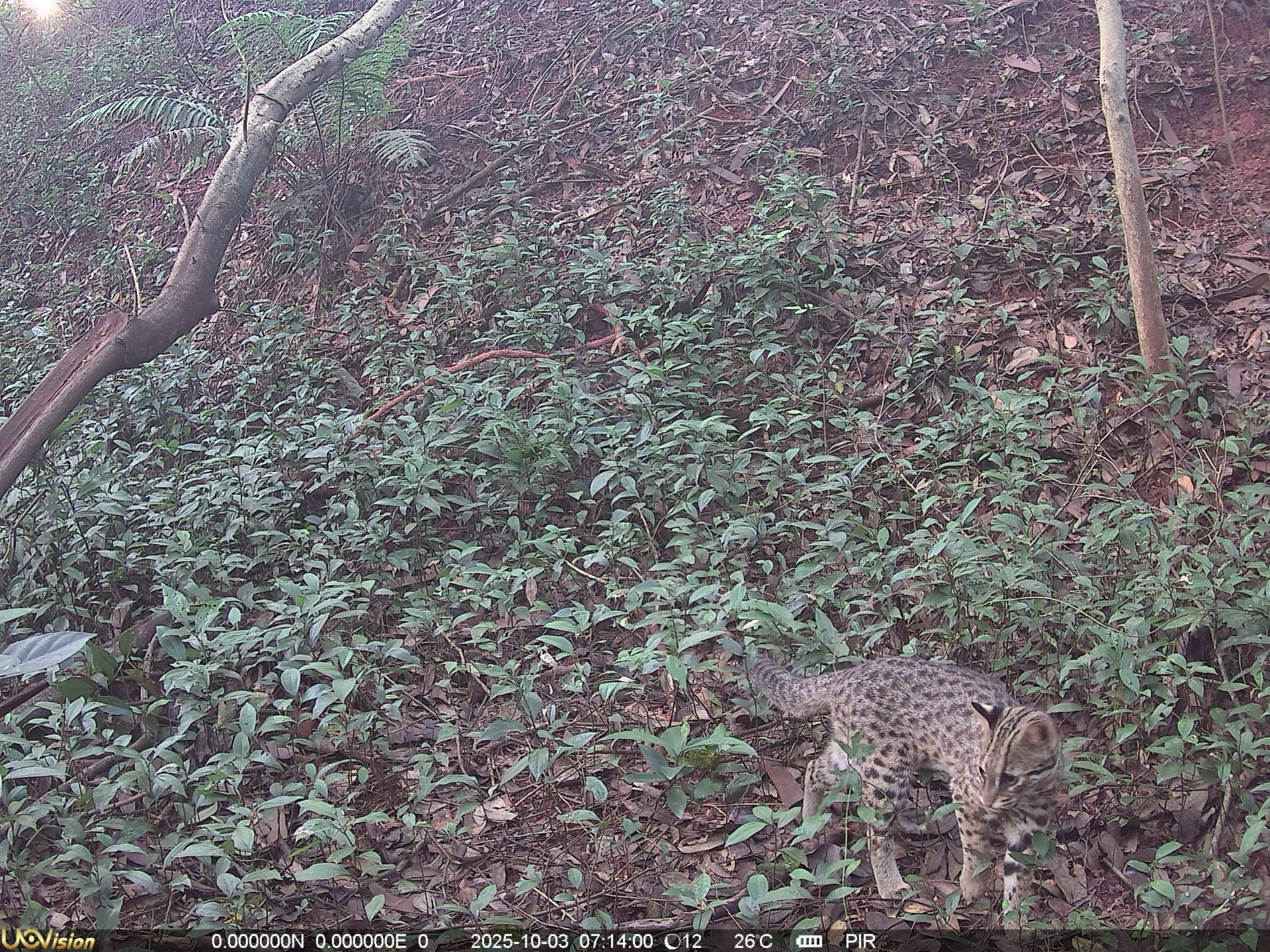 日前,在深圳大运公园的密林深处,来自香港中文大学(深圳)的团队用红外相机,捕捉到了令人振奋的画面——国家二级保护动物豹猫正在这座城市公园里自在生活。据悉,2025年9月起,香港中文大学(深圳)生物多样性研究团队便通过布设于大运公园与神仙岭的多台红外相机,持续记录到豹猫的活跃身影。