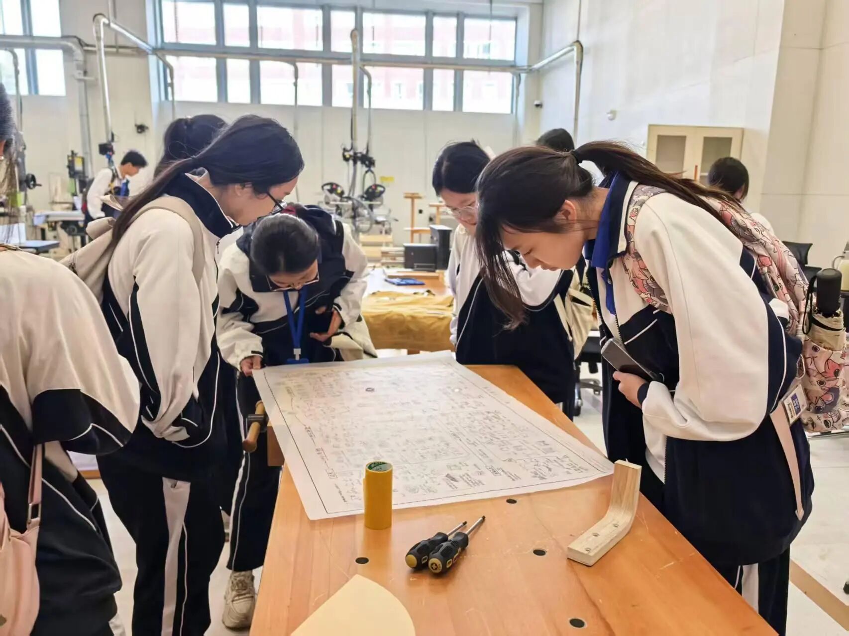 讲座结束后,同学们在深技大创意设计学院老师的带领下,参观了学院的展厅、实验室与实训室。先进的设备、浓厚的学术氛围以及深技大学生们的优秀作品,让同学们直观感受到了大学教育的资源优势。参观过程中,大家边走边看、边听边问,不时驻足交流、拍照记录,并在学院楼前合影留念。