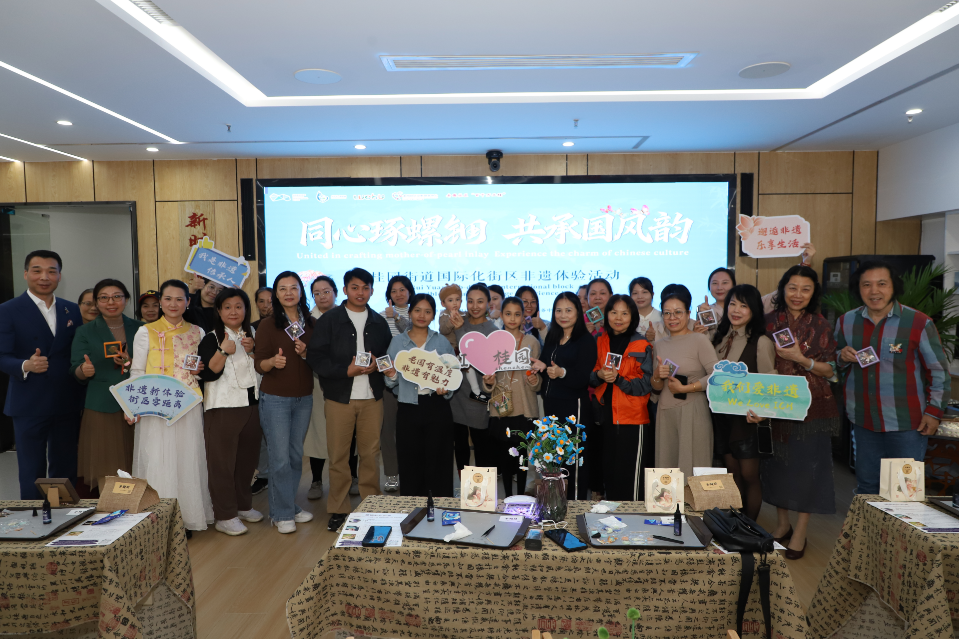 近日,罗湖区桂园街道老围社区党委在老围新时代文明实践站开展“同心琢螺钿·共承国风韵”国际化街区非遗体验活动。