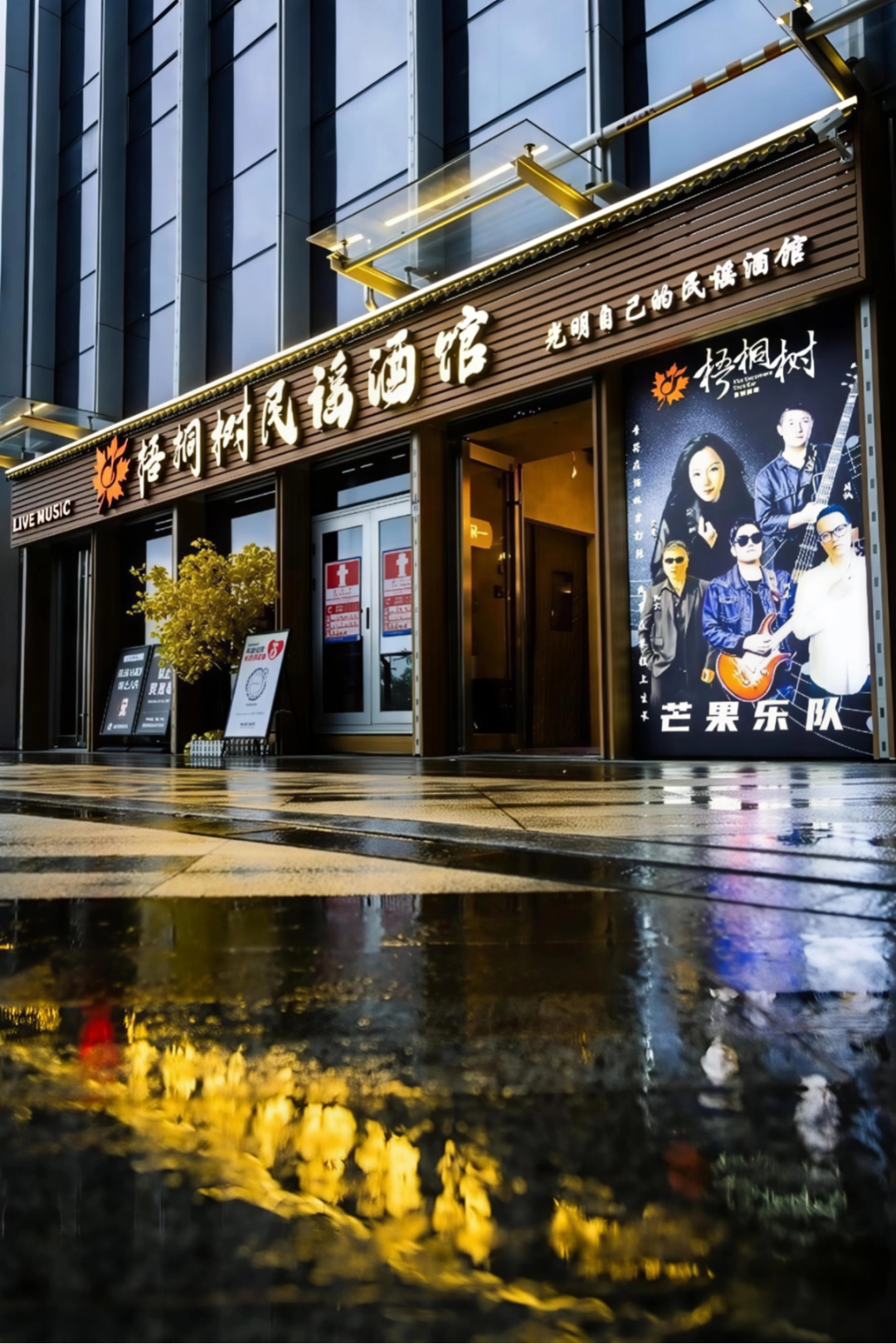 梧桐树民谣酒馆是光明人自己的民谣栖息地,躲进梧桐树下的和弦里,就能隔绝城市的喧嚣。每晚都有现场乐队演绎温暖旋律,暖黄灯光与轻柔的吉他弹唱交织,点一杯特调鸡尾酒,工作的疲惫便在旋律中渐渐消散。