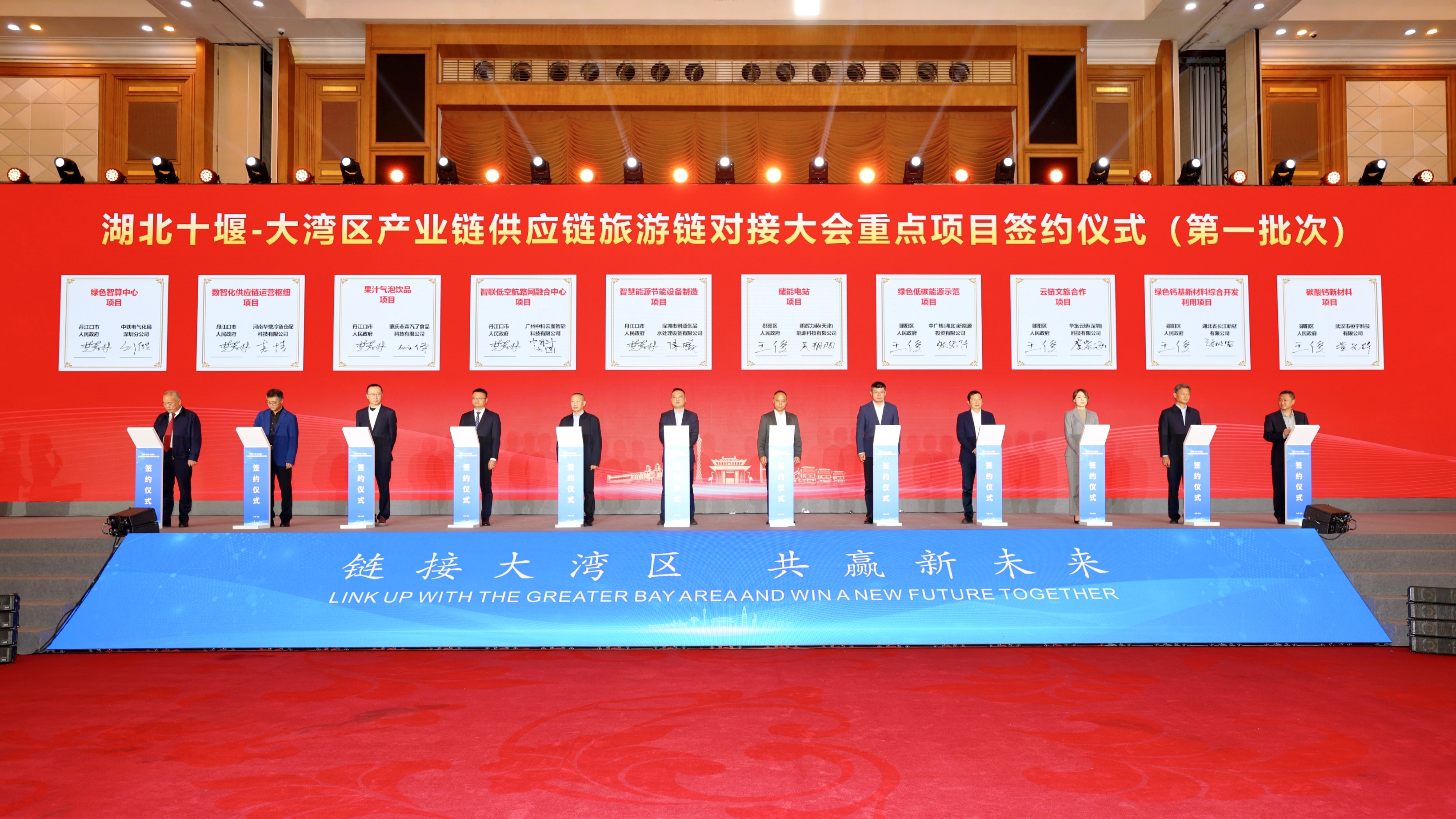 山海携手启新程,产业共兴谱华章。11月28日,湖北十堰—大湾区产业链供应链旅游链对接大会在深圳五洲宾馆隆重召开。这场跨越山海的盛会以“链接大湾区 共赢新未来”为主题,通过主会场集中活动与七大分会场专题对接联动,搭建起跨区域合作的坚实桥梁,50个重点项目在大会现场集中签约,涉及汽车及零部件、高端装备、生物医药等领域,投资总额357.45亿元,推动十堰“一主四优多支撑”产业体系与大湾区创新资源深度融合,续写“深圳研发+十堰制造”的协同发展新篇章。