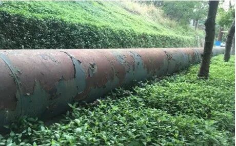 水管整体情况良好,但由于管道属于明管铺设,日晒雨淋,部分地方出现了漆面脱落的情况,需要定期进行防腐处理。出于美观考量,对这条水管实施了防腐与美化。