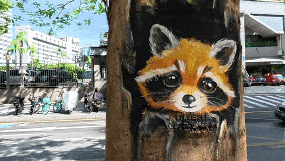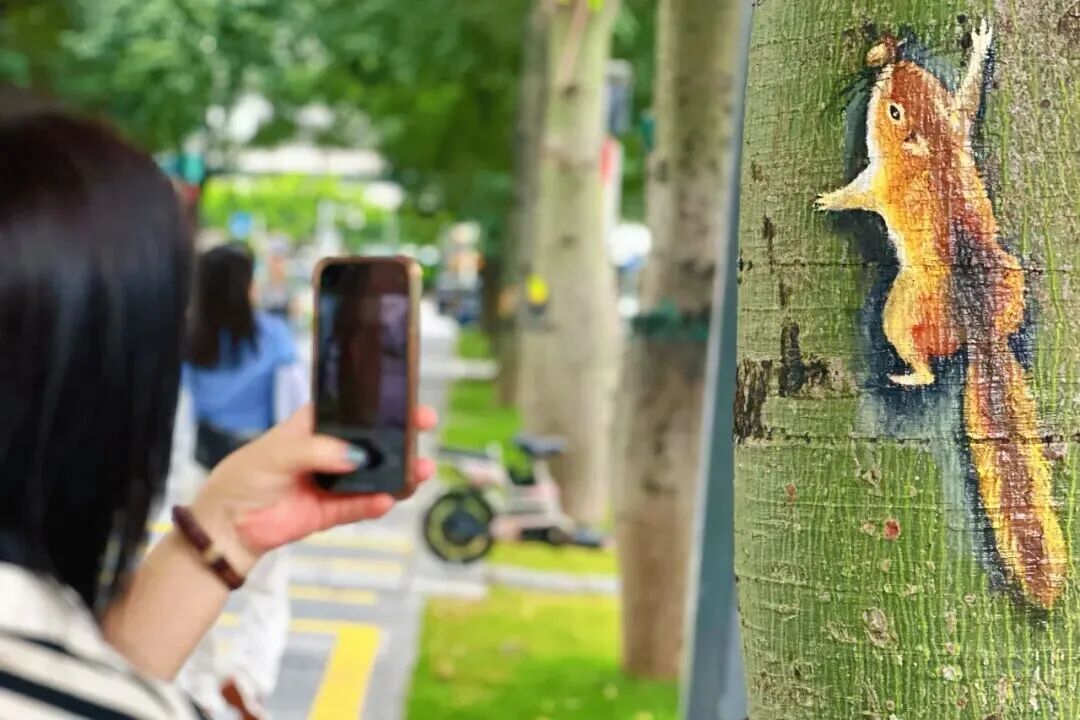 当彩色的路面出现在脚下,当抬头的瞬间与树梢上一只栩栩如生的松鼠四目相对,当披上花衣衫的变电箱调皮地在后视镜里露出身影……内心总会被狠狠击中,日复一日的单调生活即刻瓦解,重新焕发活力和趣味。这大概是街头彩绘的独特魅力吧。