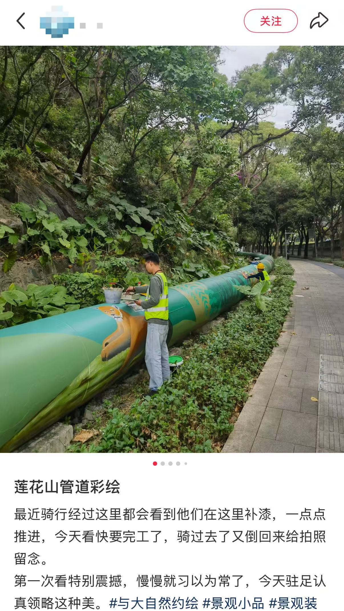 偶遇工人们在管道上彩绘