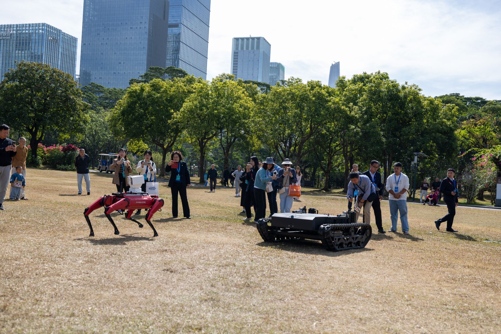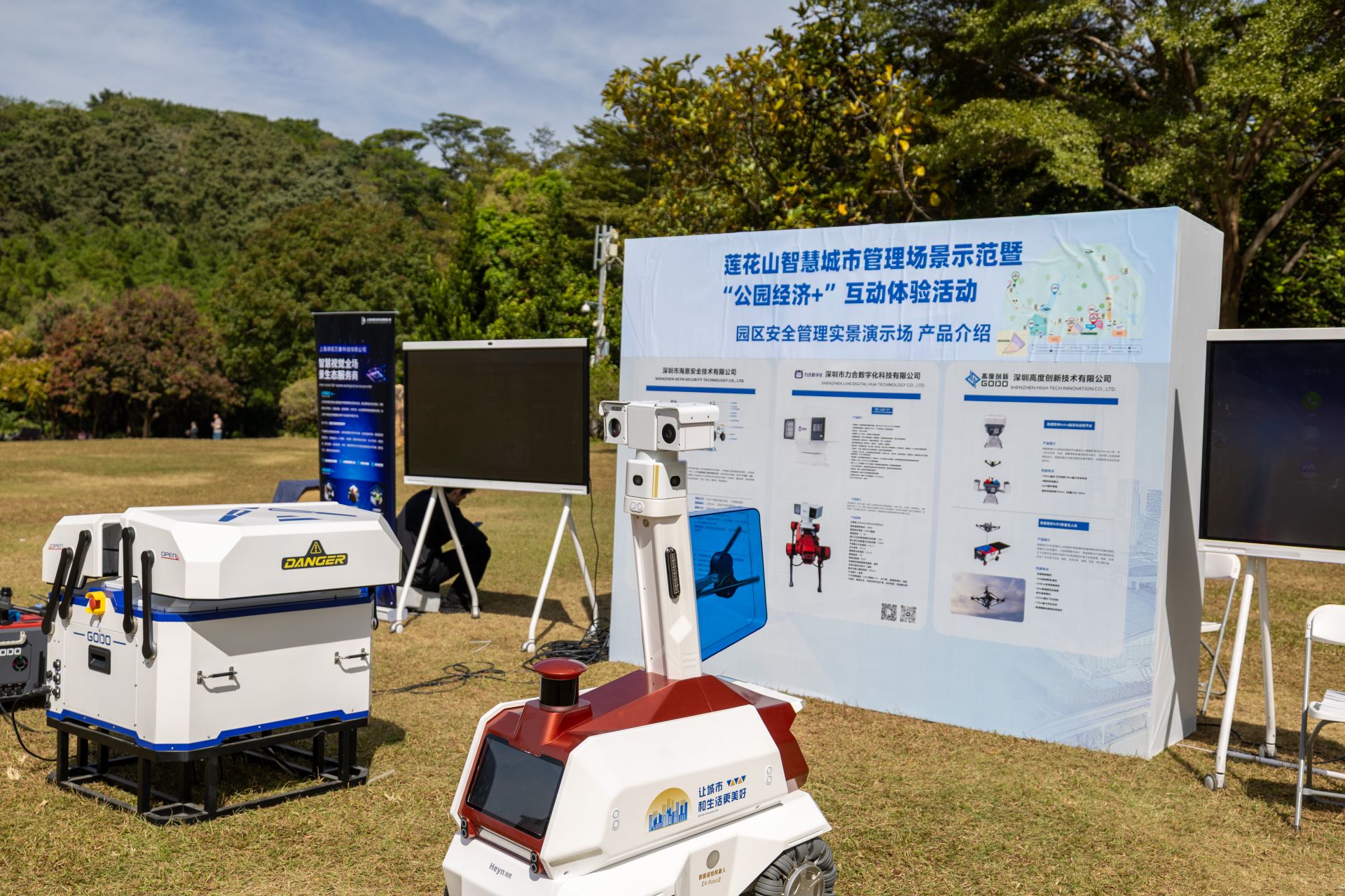 与此同时,莲花山公园变身为智慧城市管理的实景演示场,莲花湖上,“无人机+无人船+智能救援机器人”构建“空水岸”防线,创新生态保护模式;椰风林广场上,无人机配送演示低空经济拓展了城市服务的空间维度等。