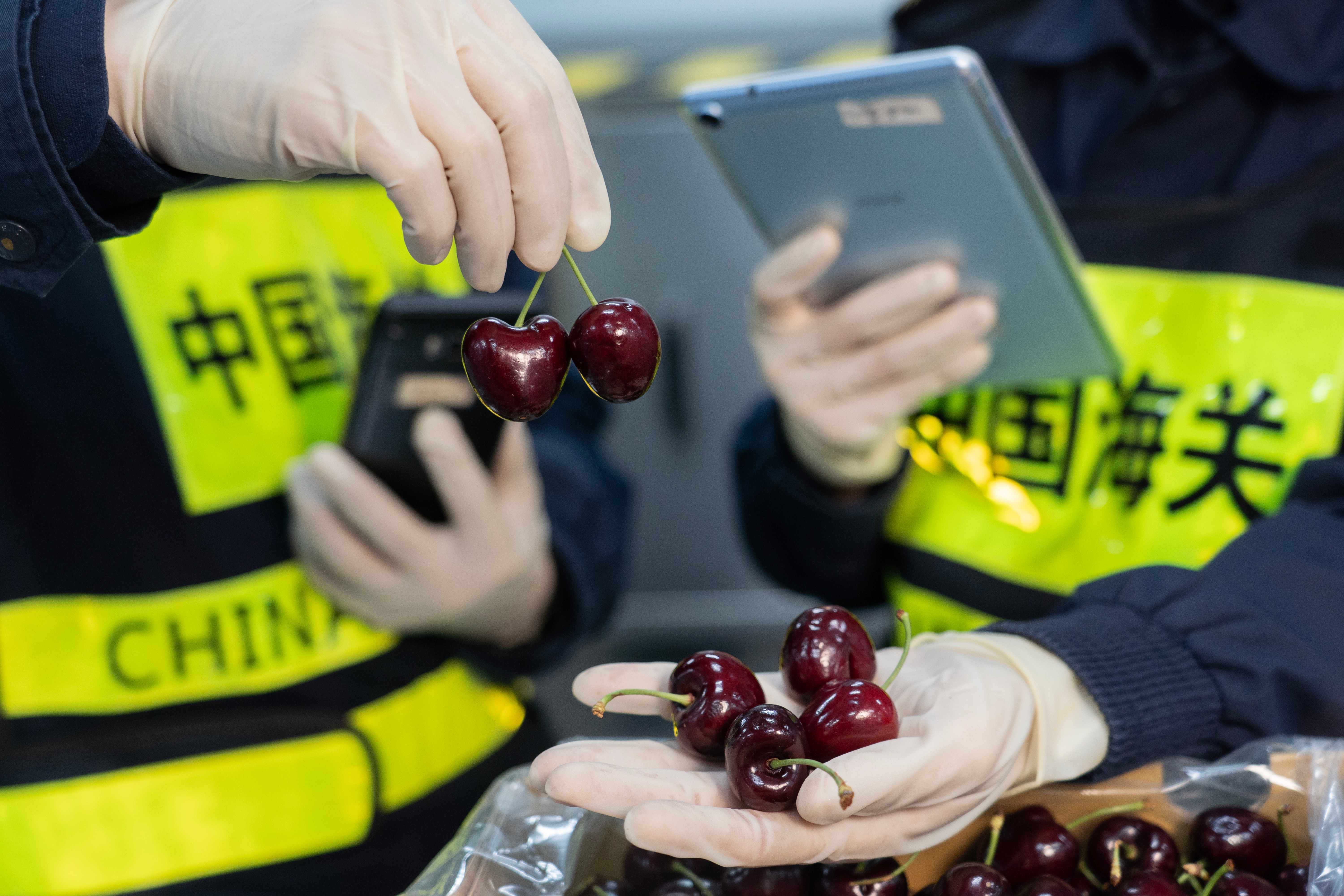 港珠澳大桥海关关员对进口新鲜水果进行查验。林昌峰 摄