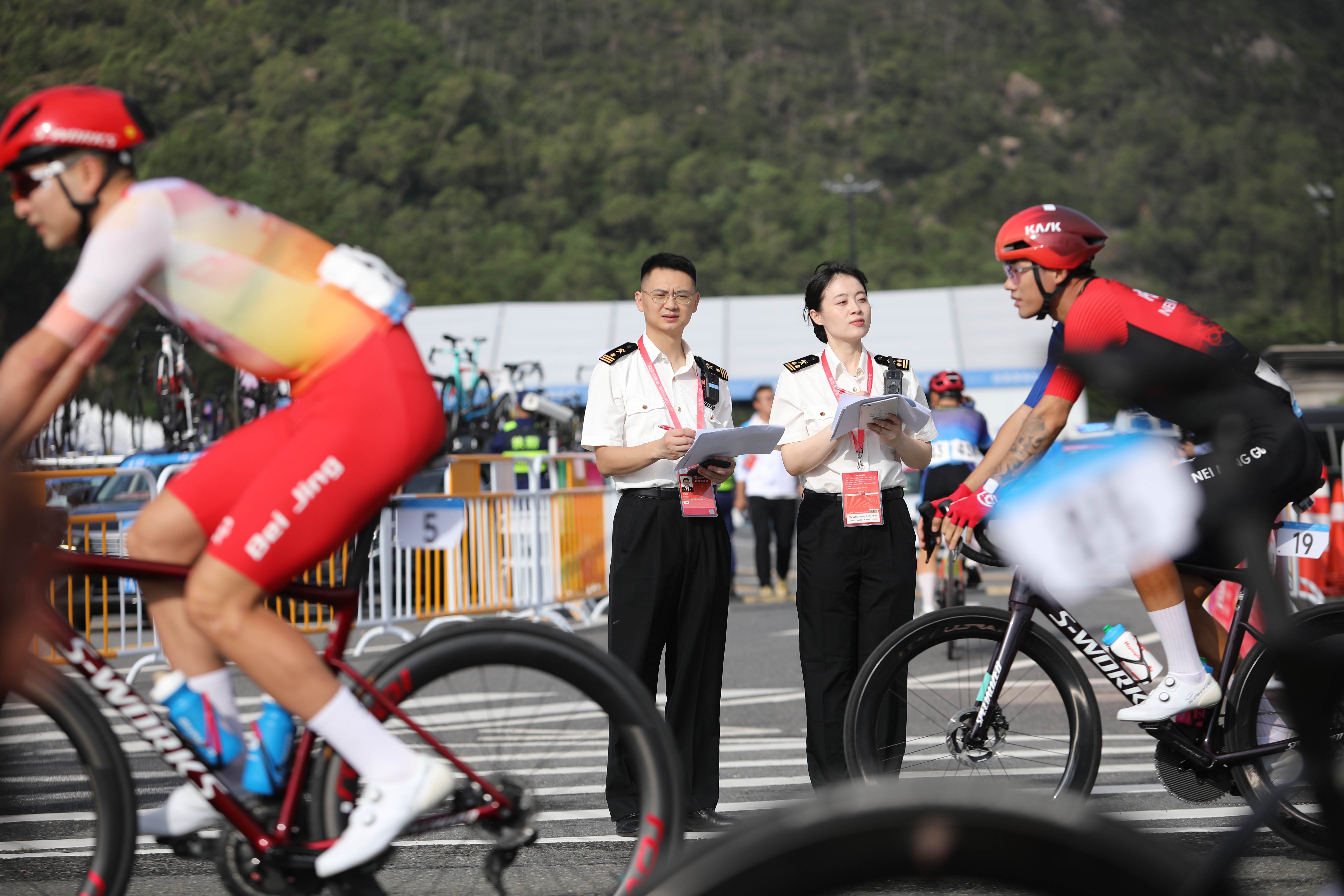 图为港珠澳大桥海关关员验放参赛运动员物资。俞波 摄