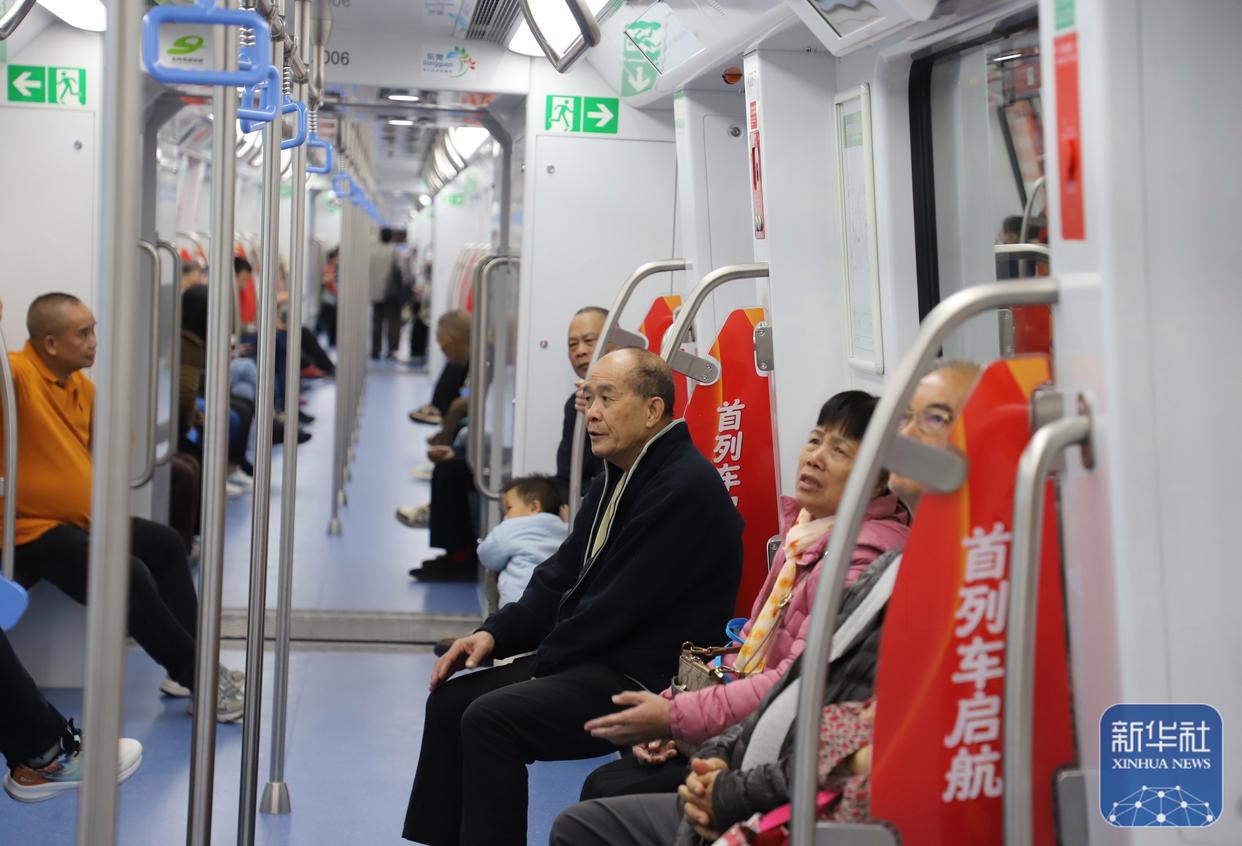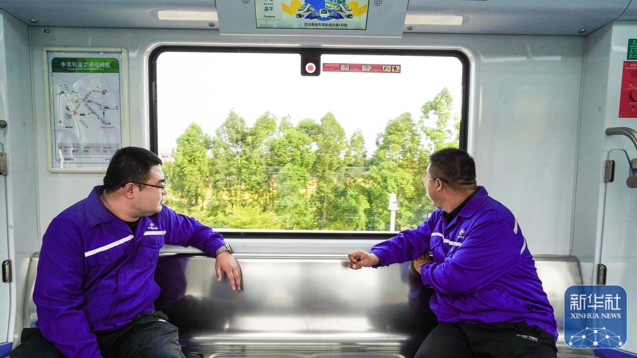 11月28日,中铁十四局建设者乘坐东莞轨道交通1号线。新华社发(张芳 摄)