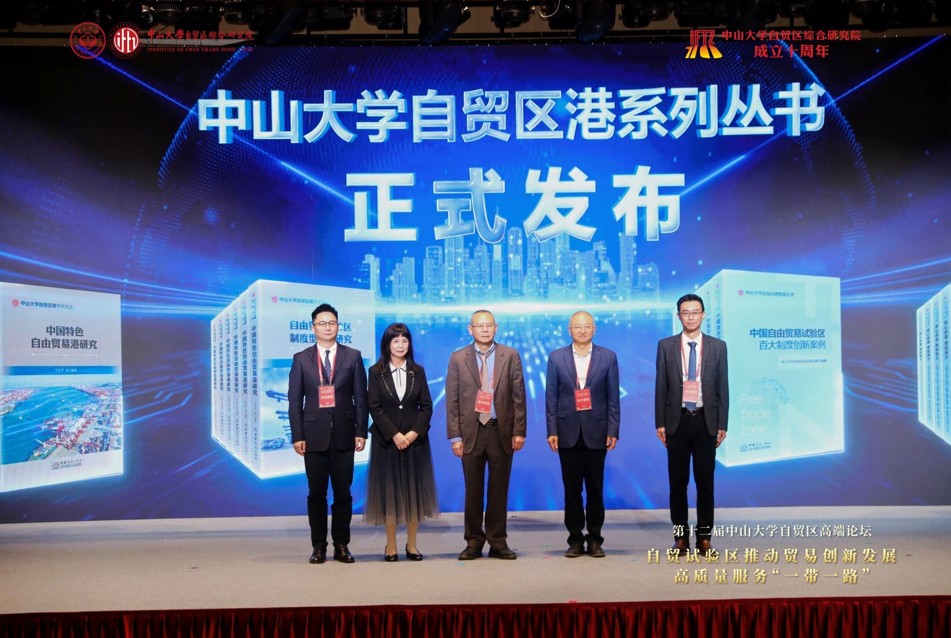 值得一提的是,“中山大学自贸区港系列丛书”在活动中重磅发布。据了解,该系列丛书由中山大学自贸区综合研究院与商务出版社联合出版,共有两个系列,一是中山大学自贸区港智库丛书,二是中山大学自贸区港学术文丛。其中代表作有《中国自由贸易试验区百大制度创新案例》,揭晓中国自由贸易试验区发展建设过程中涌现出的具有代表性的百大制度创新案例,系统呈现我国自由贸易试验区建设进程中涌现的标杆性制度创新成果;《中国特色自由贸易港研究》为承担国家社会科学基金重大专项“中国特色自由贸易港‘1+N’模式的制度创新及实现路径”的研究成果,系统覆盖中国特色自由贸易港建设的核心命题与关键领域;《改革破题 创新引路——前海制度创新研究》聚焦前海在现代服务业、法治建设、区域治理以及推动香港融入国家发展大局等多方面的制度创新,深入剖析现状、总结经验,并提出极具前瞻性的展望和建议,对理解和推动前海发展乃至粤港澳大湾区建设意义非凡。