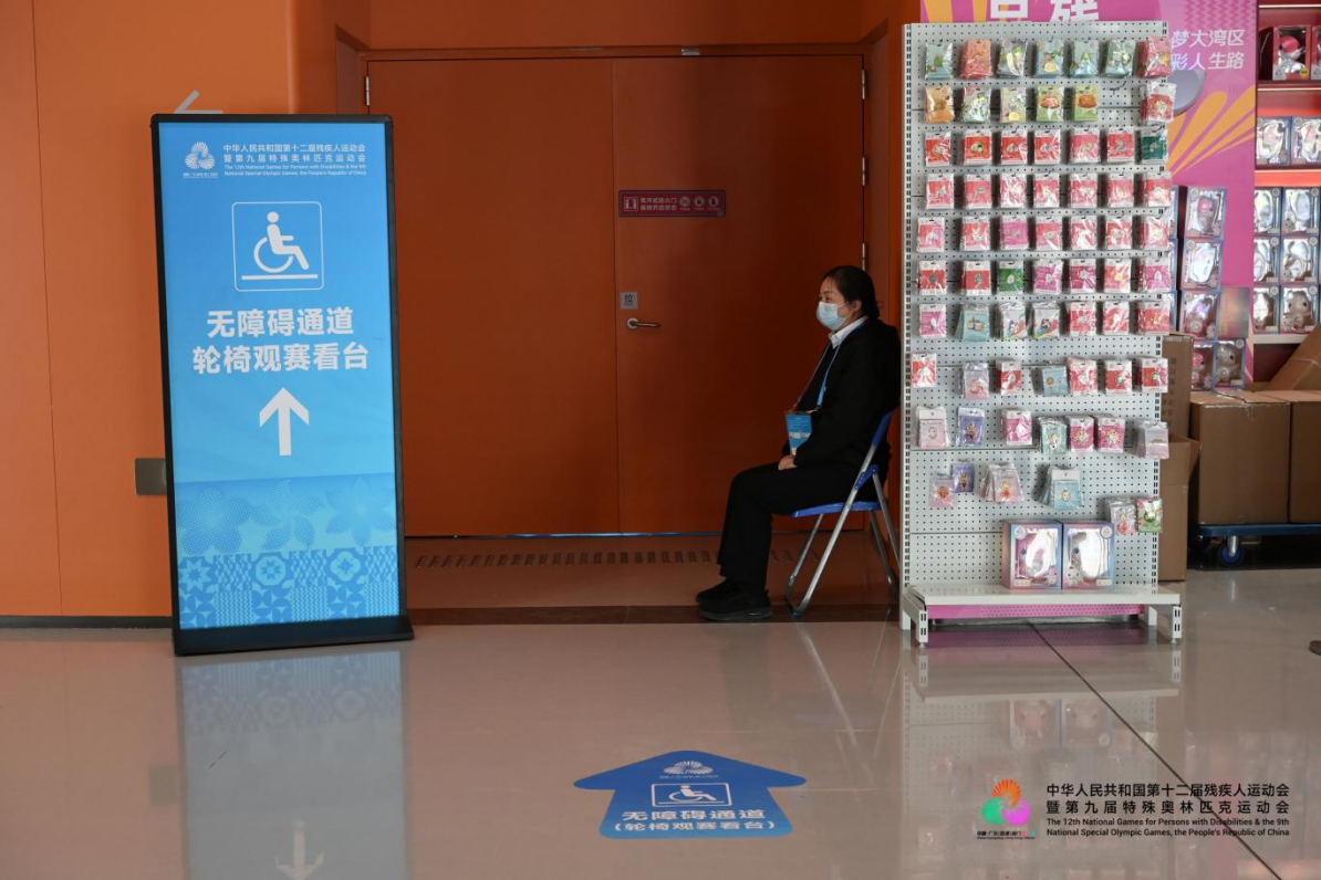 如今,场馆内无障碍设施实现 “全场景覆盖”:无障碍卫生间、淋浴间、停车位、轮椅坐席(看台与 FOP)、电梯、盲道等一应俱全,无障碍厕位占比超 90%;更增设带扶手盲文指引、无障碍卫生间盲文布局图、语音导览盲文地图等特色设施,将人文关怀融入细节。为确保设施实用,服务部门反复优化观众、运动员、媒体等专业流线,连不足5厘米的台阶差距,均用适配角度的斜坡改造;经过培训的服务人员,会主动询问运动队需求,精准提供指引帮助。