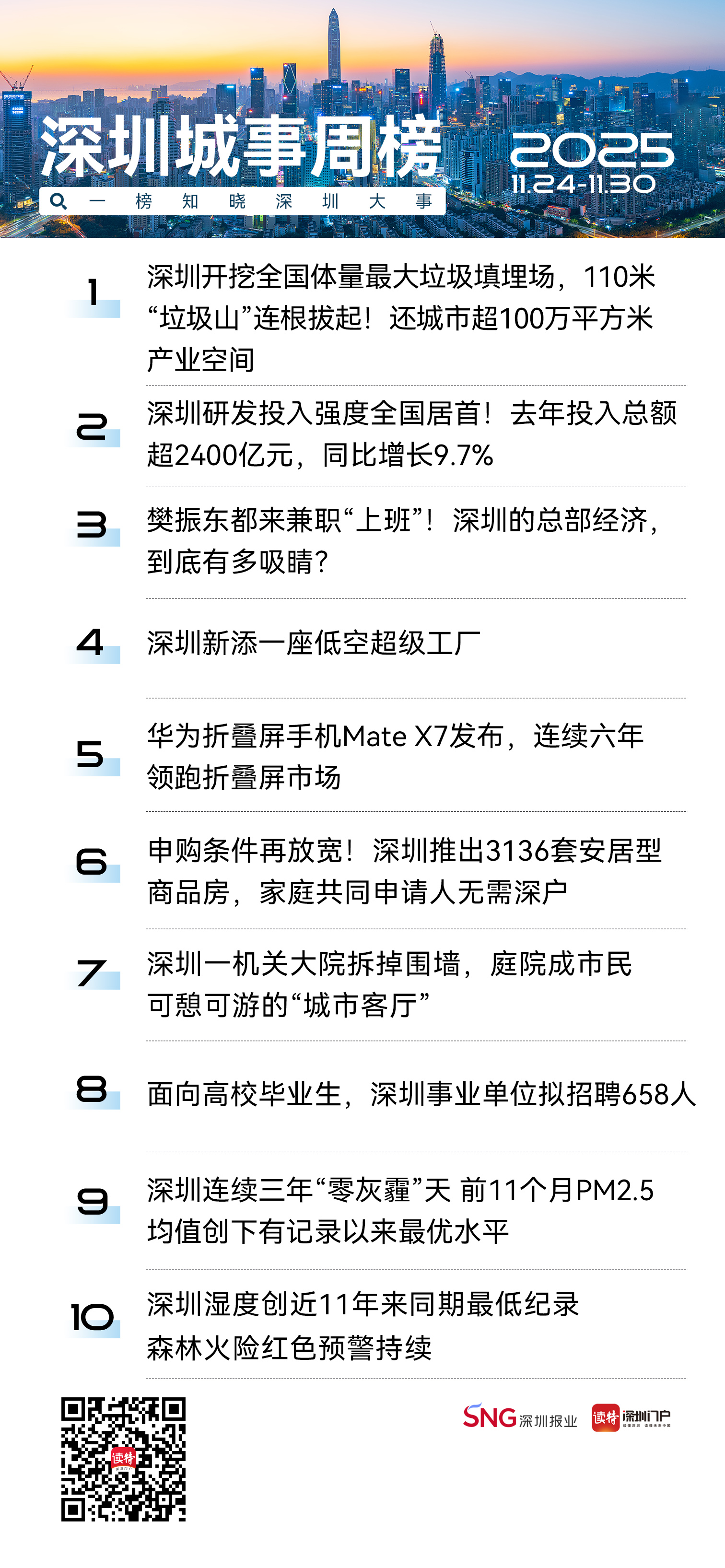 在深圳,城市治理正展现出无微不“智”的新图景。本周,从拔除110米高垃圾山释放百万产业空间,到连续三年实现“零灰霾”、PM2.5再创新低;从研发投入强度持续领跑,到低空经济、折叠屏技术引领产业浪潮,这座城市的治理精度与创新动能正协同发力,推动深圳在高质量发展道路上加速奔跑。