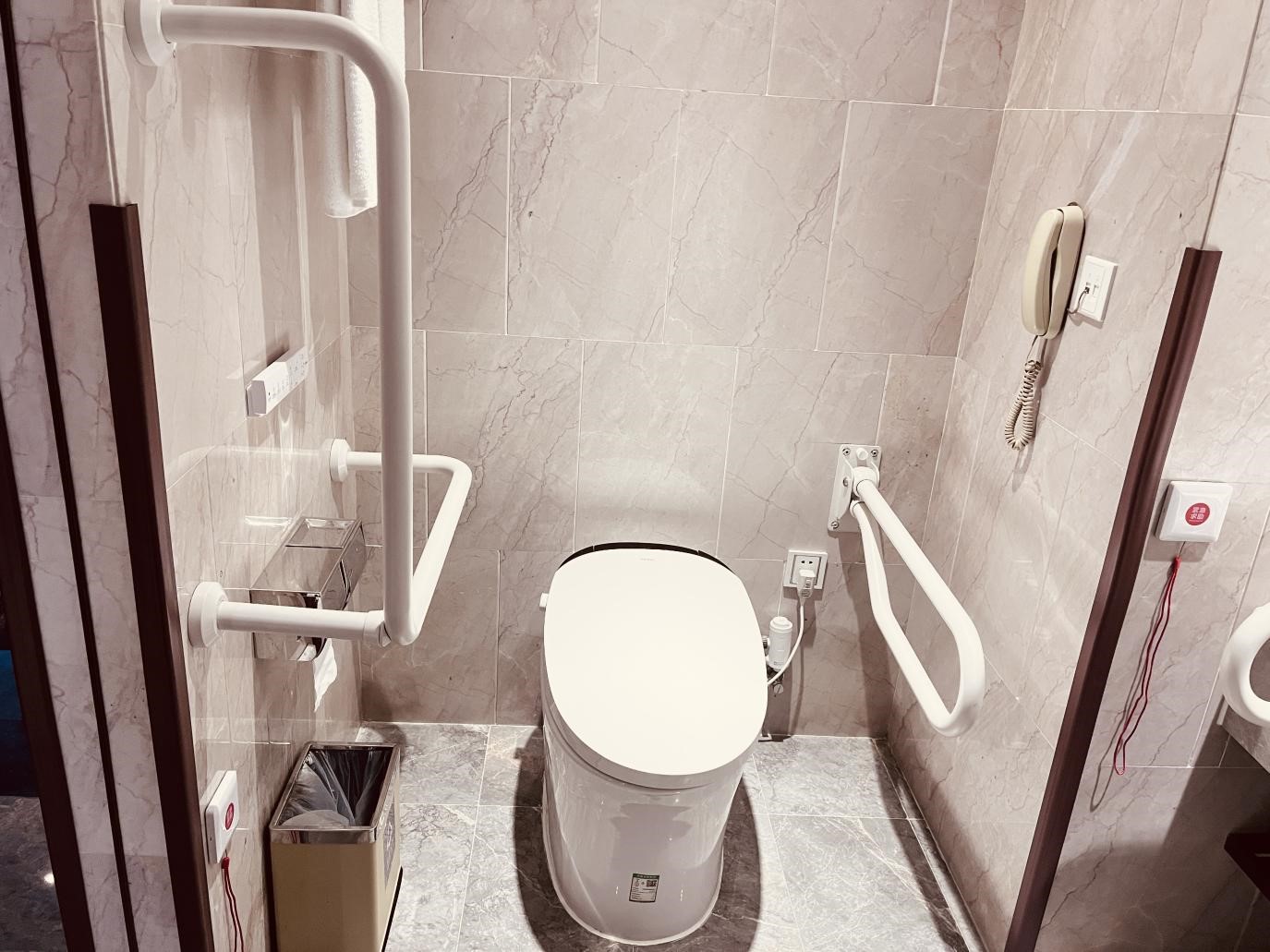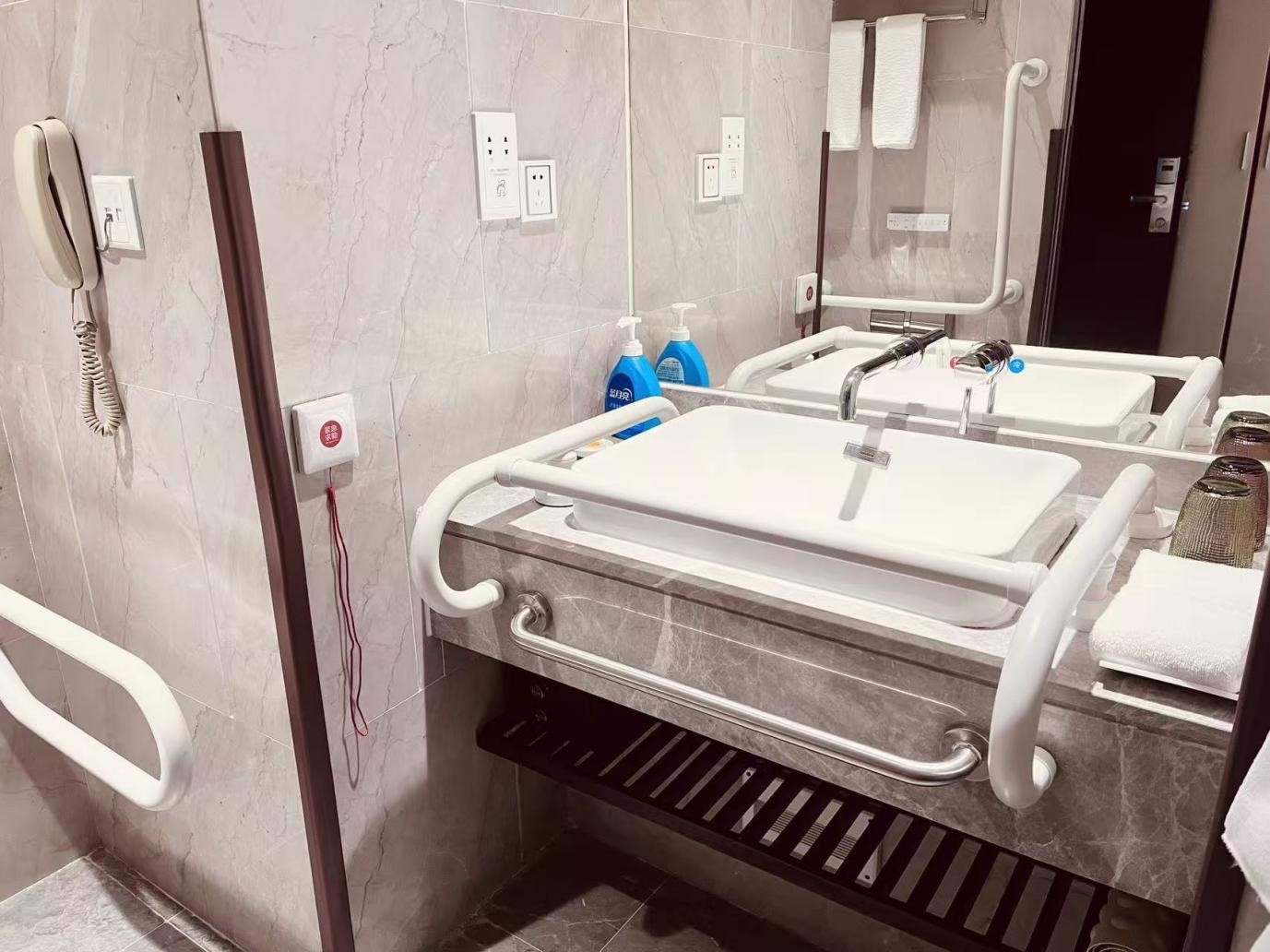 作为赛事承办地,福田赛区延续了此前承办羽毛球赛事时的“温度服务”,将无障碍理念贯穿于赛事接待与场馆运行的每一个环节。在运动员入住的酒店,55间轮椅友好房与30间听障友好房早已准备就绪,洗手间门被卸除并安装门帘以保障隐私,低位洗手盆、报警按钮、淋浴扶手、冲凉座椅、拐杖架等设施一应俱全,从细节处体现对运动员的尊重与关怀。