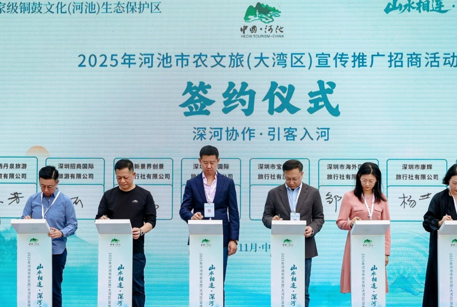 河池市重點文旅企業廣西巴馬壽鄉旅遊股份有限公司、宜州區壯美三姐故裏旅遊開發有限公司、廣西丹泉旅遊投資有限公司還與深圳攜程國際旅行社有限公司、深圳市寶旅國際旅行社有限公司、深圳新景界創景國際旅行社有限公司、深圳市海外國際旅行社有限公司、深圳招商國際旅遊有限公司、深圳市康輝旅行社有限公司、國深旅(深圳)國際旅行社有限公司、深圳市暖心國際旅行社有限公司、桂林市假期之旅國際旅行社有限責任公司深圳第一分公司、深圳市亞太國際旅行社有限公司、深圳市萬悅旅遊有限公司、深圳星程文旅商貿有限公司、廣東旅遊等大灣區重點旅行社簽訂了旅遊客源輸送合作協議。