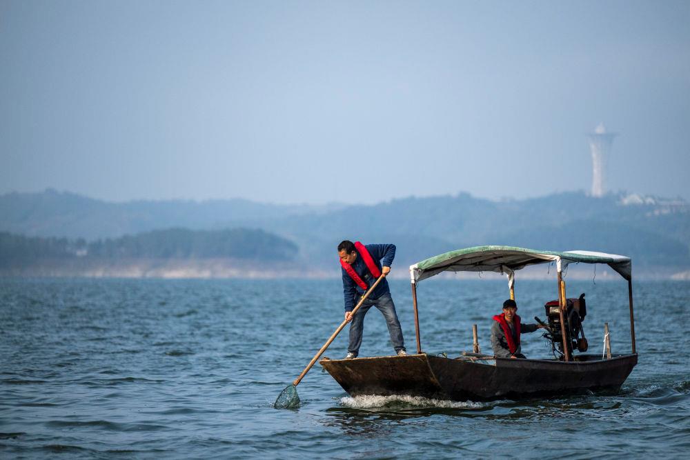 2024年10月28日,湖北十堰丹江口清漂队队员在库区进行清漂作业。2023年,丹江口成立“小水滴”守水护水志愿服务队,越来越多人加入守水护水行列。