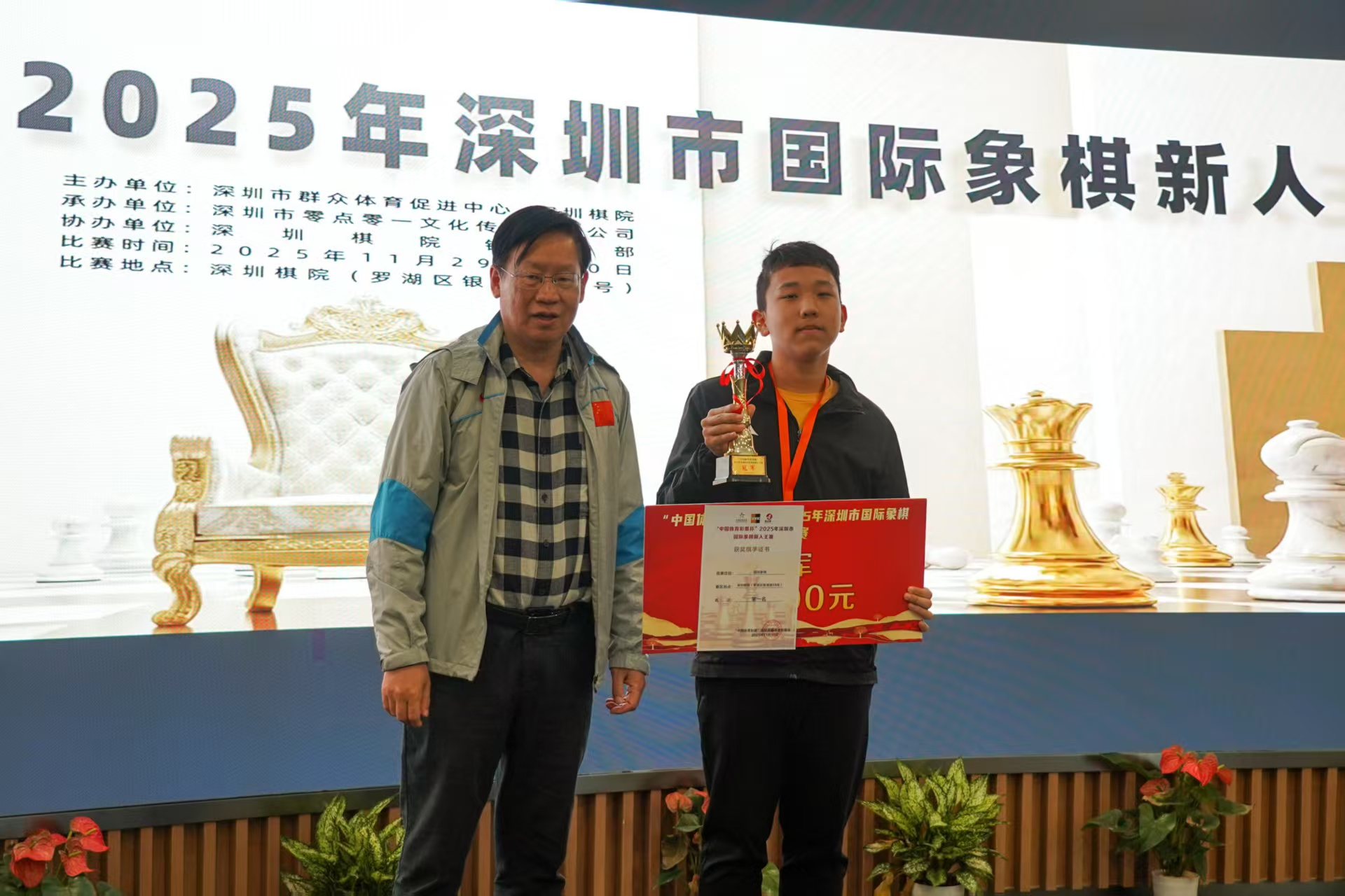 由深圳市群众体育促进中心 深圳棋院、罗湖区文化广电旅游体育局主办的,2025年“中国体育彩票杯”深圳市国际象棋新人王赛,11月29日、30日在深圳棋院银湖部成功举办。作为深圳国际象棋领域规格最高的青少年赛事之一,本届赛事汇聚了8名顶尖新秀,他们中既有李成智杯、世少赛、亚少赛等重量级赛事冠军,也有两位国际大师和众多健将称号获得者,展现了深圳国际象棋后备力量的雄厚底蕴与蓬勃生机。