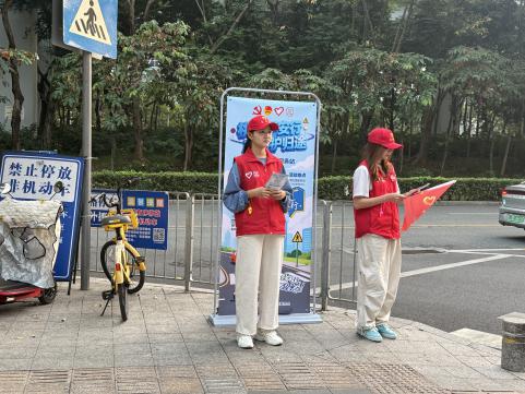 12月1日晚,深圳市南山区桃源街道联合辖区志愿者协会在塘朗志愿服务站周边路口开展“桃源平安行·志愿护归途”交通安全主题实践活动。