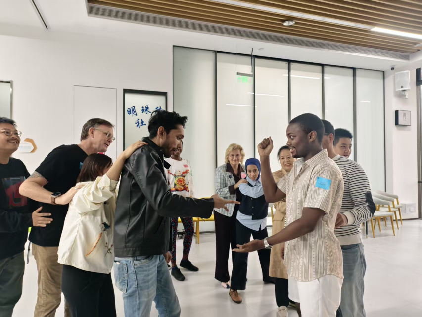 随后的破冰游戏中,志愿者们通过“我来自哪里”“我最喜欢的中国菜”“用家乡话问好”等环节拉近了彼此的距离。有人笑着说最爱炒河粉的烟火气,有人提到饺子里包裹的温暖,还有人坦言“只要是中国菜都喜欢”。当熟悉的《听我说谢谢你》旋律轻轻响起,大家用家乡话互致问候,笑声与歌声交织,现场洋溢着浓浓的温情与默契。