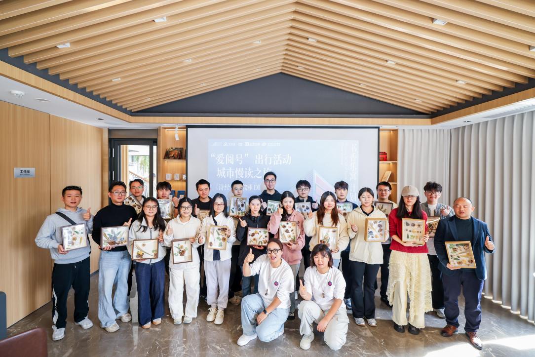 “爱阅号”移动书巴停靠荔湖书苑后,青年们还在此开展了一场以《诗经》为主题的植物框制作活动。大家结伴诵读《诗经》名句,在诗声中相互交流感悟,一同认识“蒹葭”“荇菜”“卷耳”等古老植物;随后亲手挑选素材、细心布置,将三千年诗意凝练成一件件立体装饰,更在协作中收获了志同道合的情谊。“以前读《蒹葭》只觉得文字美,今天亲手把这些植物做成相框,还能和同样喜欢传统文化的伙伴们一起聊诗,这种沉浸式体验太有意义了!”一位参与活动的95后青年分享道,“在深圳奋斗难免有孤独感,但这样的活动让我找到了同频的朋友,也让快节奏的生活多了份诗意。”